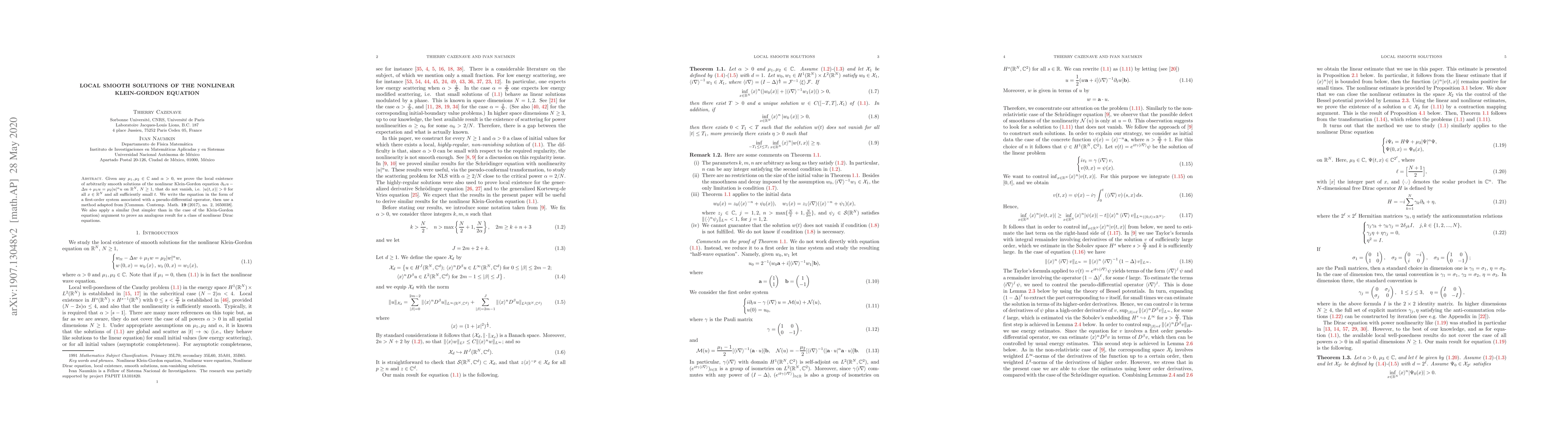 This paper proves the local existence of smooth, non-vanishing solutions to the nonlinear Klein-Gordon equation on ${\mathbb R}^N$ using a method adapted from contemporary mathematical literature. The authors also extend their approach to a similar class of nonlinear Dirac equations.