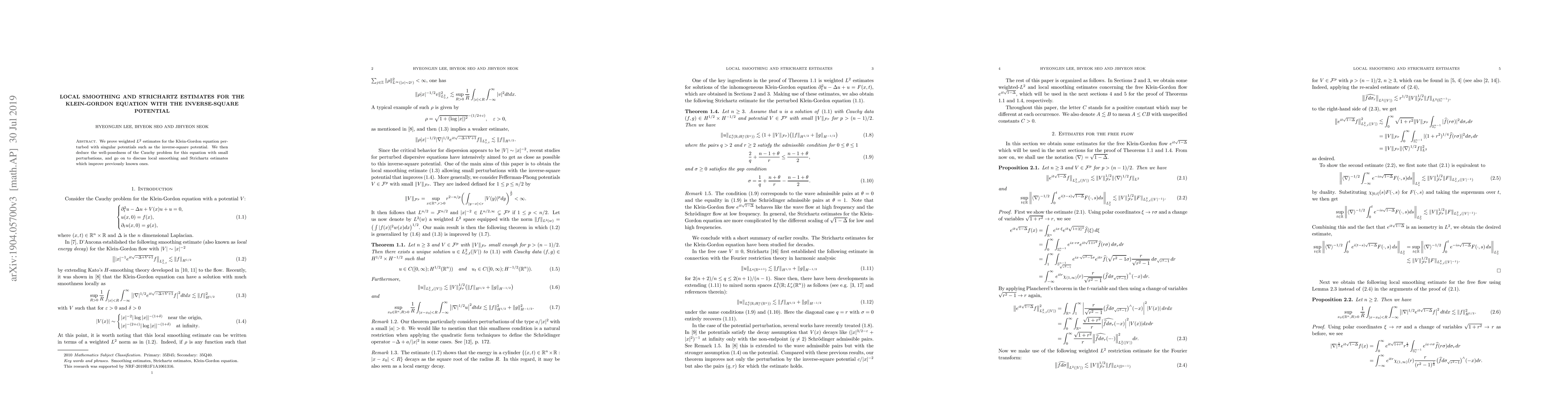 Summary: This paper establishes weighted $L^2$ estimates for the Klein-Gordon equation under an inverse-square potential, and uses these estimates to prove well-posedness for small perturbations. It also enhances local smoothing and Strichartz estimates compared to previous results.