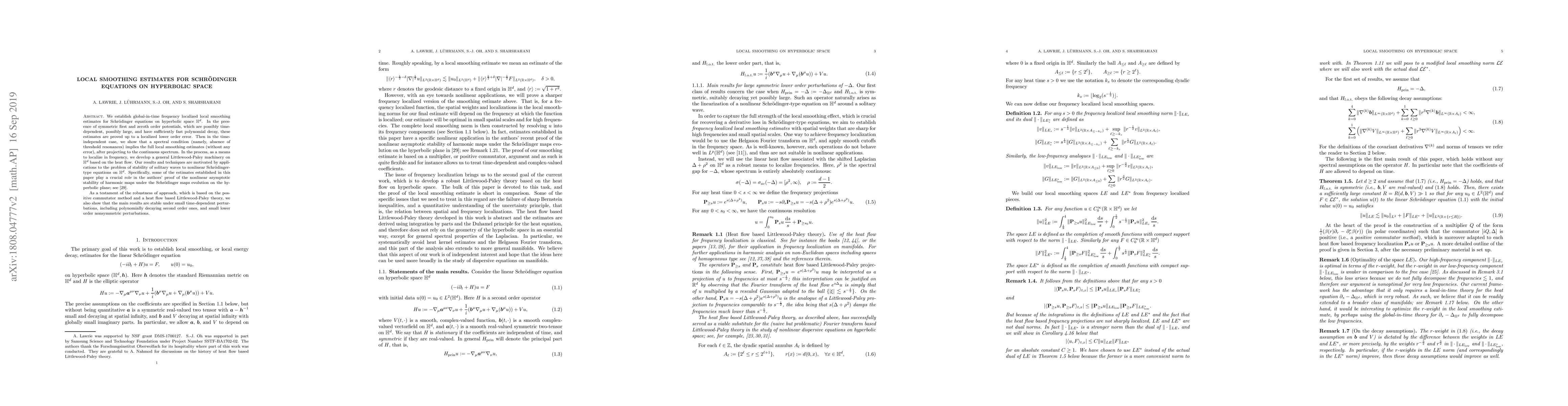 This paper establishes global-in-time local smoothing estimates for Schrödinger equations on hyperbolic space, proving them under certain conditions for symmetric potentials and showing full local smoothing without error in the time-independent case. The developed Littlewood-Paley machinery and positive commutator method are robust against small perturbations, with applications to the stability of solitary waves in nonlinear Schrödinger-type equations.