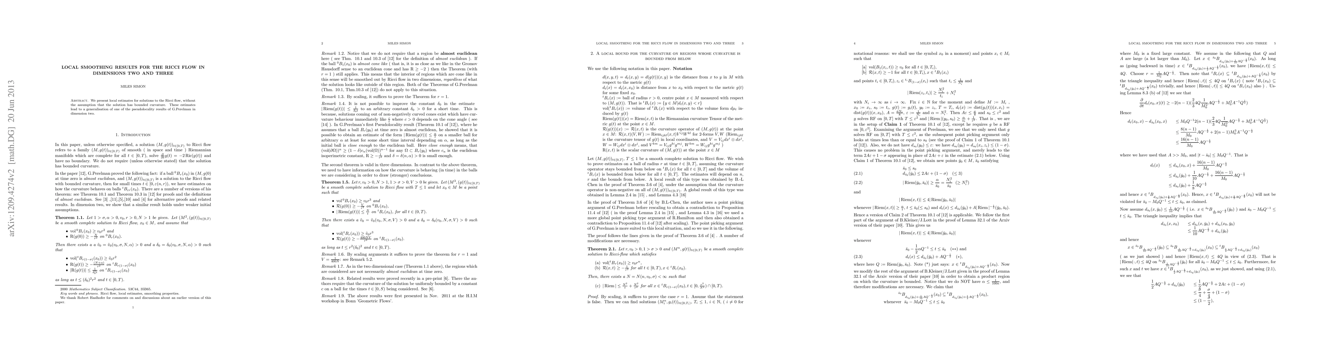 We present local estimates for solutions to the Ricci flow, without the assumption that the solution has bounded curvature. These estimates lead to a generalisation of one of the pseudolocality results of G.Perelman in dimension two.