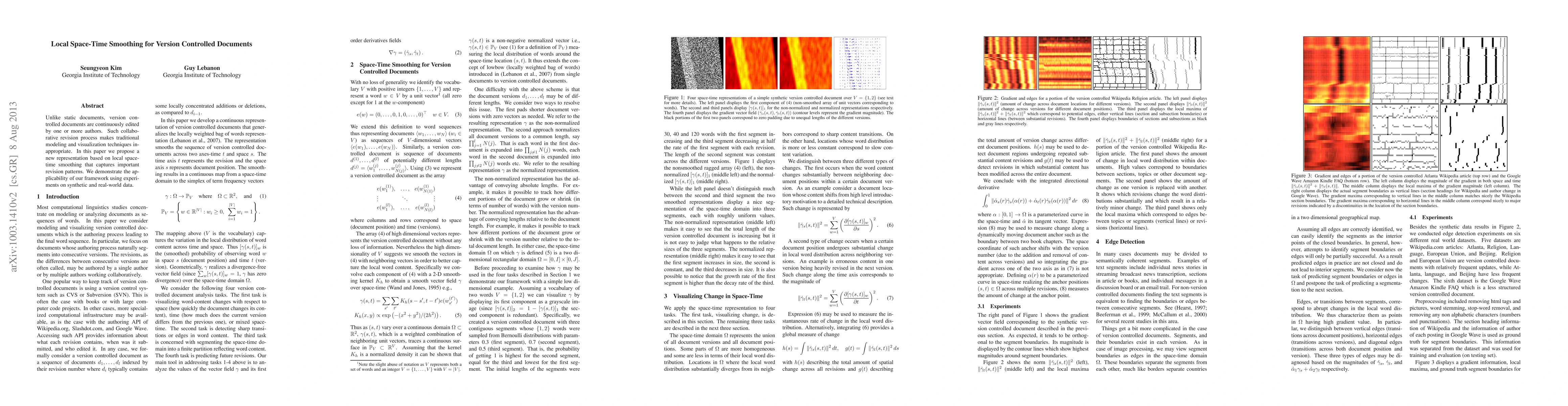 This paper introduces a local space-time smoothing technique to model and visualize version-controlled documents, addressing the challenges of collaborative revision processes. Experiments on both synthetic and real-world data demonstrate the effectiveness of the proposed framework.