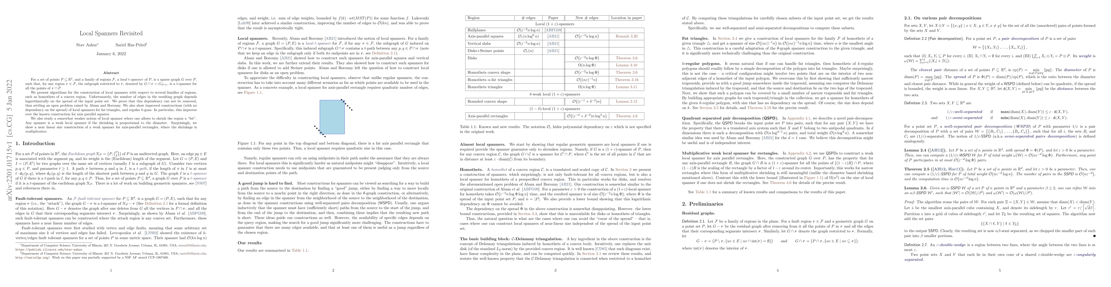 The paper presents algorithms for constructing local spanners of points in 2D space that are sparse enough to have logarithmic dependency on the spread of the input point set, but shows improved constructions for specific cases with no such dependency.