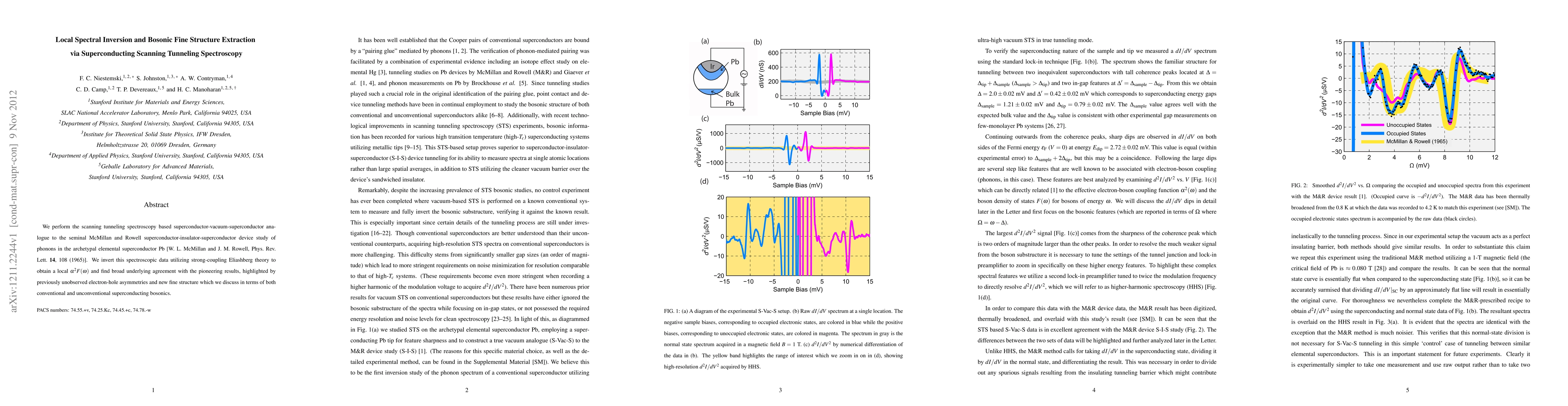 We perform the scanning tunneling spectroscopy based superconductor-vacuum-superconductor analogue to the seminal McMillan and Rowell superconductor-insulator-superconductor device study of phonons in the archetypal elemental superconductor Pb [W. L. McMillan and J. M. Rowell, Phys. Rev. Lett. 14, 108 (1965)]. We invert this spectroscopic data utilizing strong-coupling Eliashberg theory to obtain a local {\alpha}^2F({\omega}) and find broad underlying agreement with the pioneering results, highlighted by previously unobserved electron-hole asymmetries and new fine structure which we discuss in terms of both conventional and unconventional superconducting bosonics.