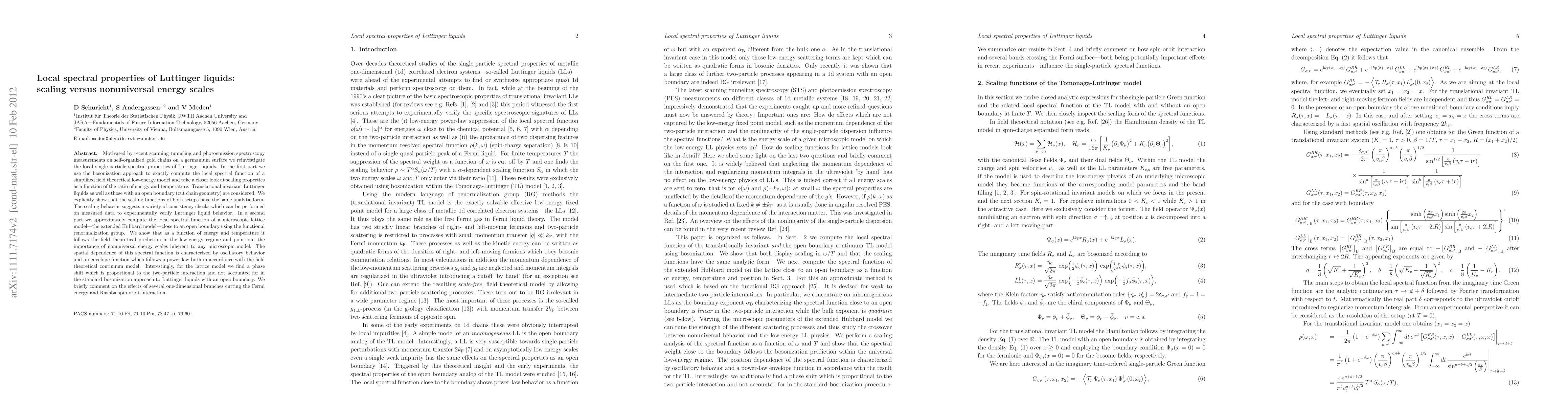 Motivated by recent scanning tunneling and photoemission spectroscopy measurements on self-organized gold chains on a germanium surface we reinvestigate the local single-particle spectral properties of Luttinger liquids. In the first part we use the bosonization approach to exactly compute the local spectral function of a simplified field theoretical low-energy model and take a closer look at scaling properties as a function of the ratio of energy and temperature. Translational invariant Luttinger liquids as well as those with an open boundary (cut chain geometry) are considered. We explicitly show that the scaling functions of both setups have the same analytic form. The scaling behavior suggests a variety of consistency checks which can be performed on measured data to experimentally verify Luttinger liquid behavior. In a second part we approximately compute the local spectral function of a microscopic lattice model---the extended Hubbard model---close to an open boundary using the functional renormalization group. We show that as a function of energy and temperature it follows the field theoretical prediction in the low-energy regime and point out the importance of nonuniversal energy scales inherent to any microscopic model. The spatial dependence of this spectral function is characterized by oscillatory behavior and an envelope function which follows a power law both in accordance with the field theoretical continuum model. Interestingly, for the lattice model we find a phase shift which is proportional to the two-particle interaction and not accounted for in the standard bosonization approach to Luttinger liquids with an open boundary. We briefly comment on the effects of several one-dimensional branches cutting the Fermi energy and Rashba spin-orbit interaction.