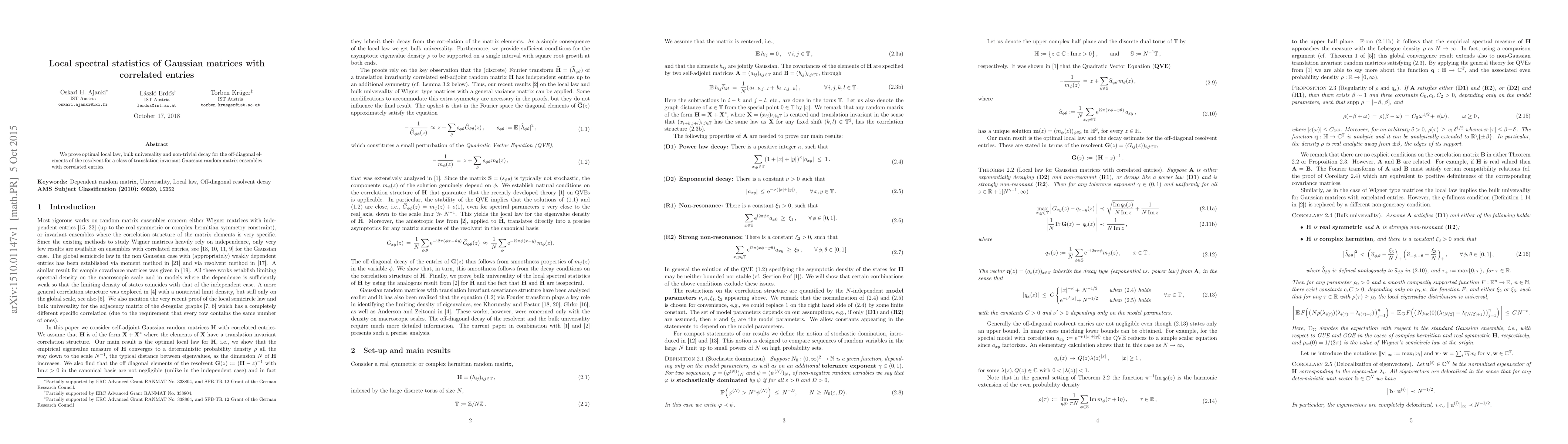 The development of a new mathematical framework for analyzing spectral statistics of random matrices with correlated entries.