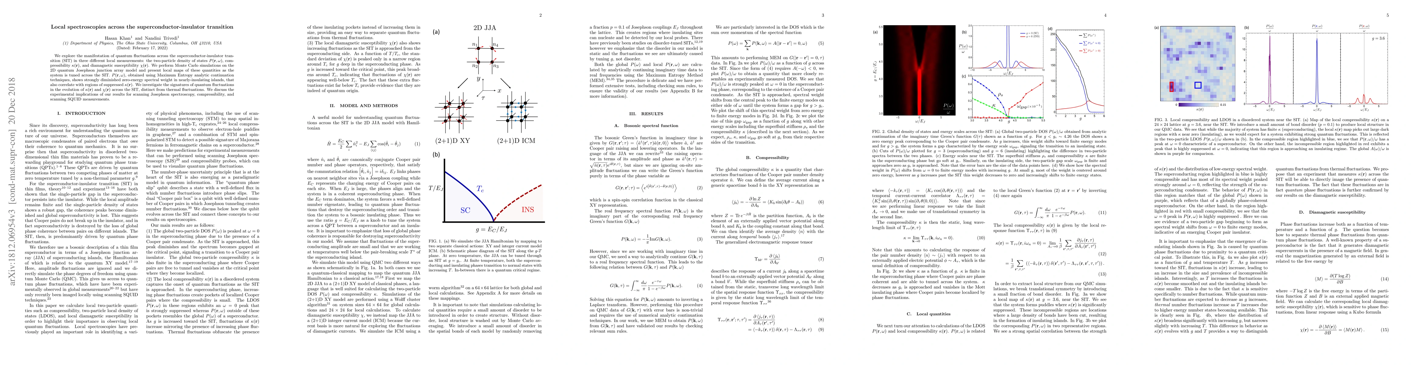 This paper investigates quantum fluctuations in the superconductor-insulator transition using Monte Carlo simulations on a 2D quantum Josephson junction array, focusing on local measurements of the density of states, compressibility, and diamagnetic susceptibility. It finds distinct signatures of quantum fluctuations correlating with nearly-insulating regions.