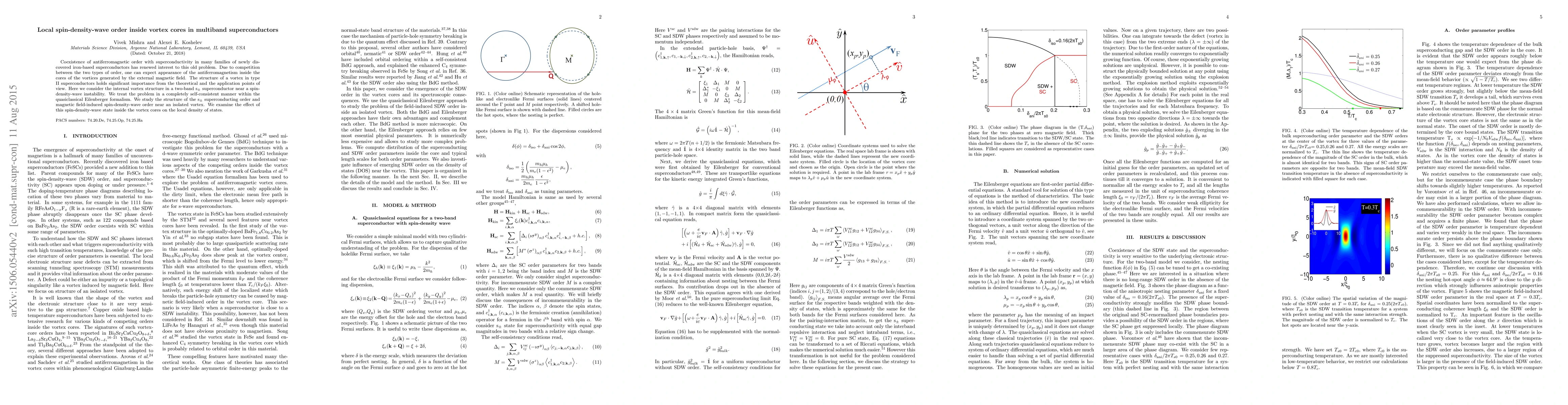 This study investigates the coexistence of antiferromagnetic spin-density-wave order with superconductivity within the cores of vortices in multiband iron-based superconductors. Using the quasiclassical Eilenberger formalism, it reveals how magnetic field-induced spin-density-wave states affect the local density of states near these vortex cores.