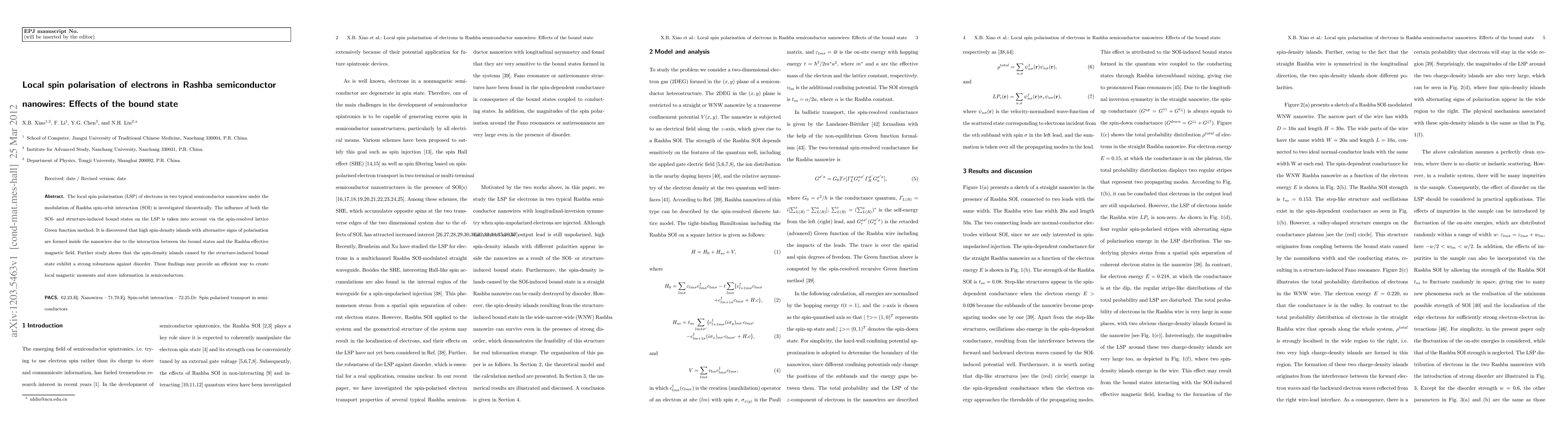 The local spin polarisation (LSP) of electrons in two typical semiconductor nanowires under the modulation of Rashba spin-orbit interaction (SOI) is investigated theoretically. The influence of both the SOI- and structure-induced bound states on the LSP is taken into account via the spin-resolved lattice Green function method. It is discovered that high spin-density islands with alternative signs of polarisation are formed inside the nanowires due to the interaction between the bound states and the Rashba effective magnetic field. Further study shows that the spin-density islands caused by the structure-induced bound state exhibit a strong robustness against disorder. These findings may provide an efficient way to create local magnetic moments and store information in semiconductors.