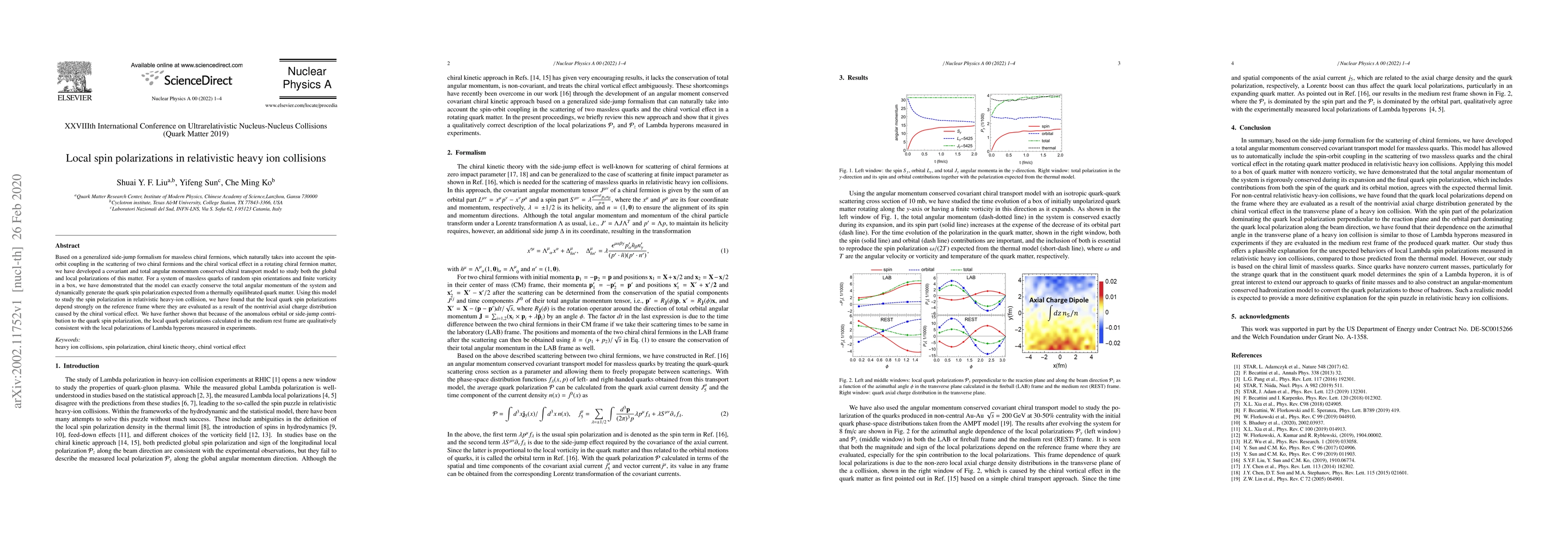 This paper develops a covariant chiral transport model to study spin polarizations in relativistic heavy ion collisions, revealing that local quark spin polarizations depend on the reference frame due to the chiral vortical effect and side-jump contributions, aligning with experimental measurements of Lambda hyperons.