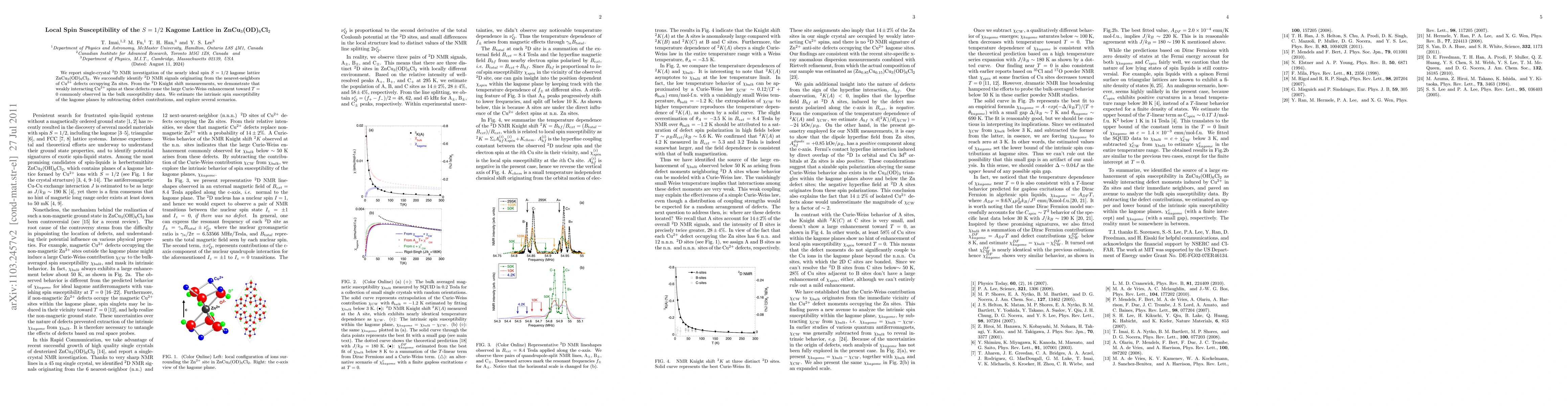 We report single-crystal 2-D NMR investigation of the nearly ideal spin S=1/2 kagome lattice ZnCu3(OD)6Cl2. We successfully identify 2-D NMR signals originating from the nearest-neighbors of Cu2+ defects occupying Zn sites. From the 2-D Knight shift measurements, we demonstrate that weakly interacting Cu2+ spins at these defects cause the large Curie-Weiss enhancement toward T=0 commonly observed in the bulk susceptibility data. We estimate the intrinsic spin susceptibility of the kagome planes by subtracting defect contributions, and explore several scenarios.