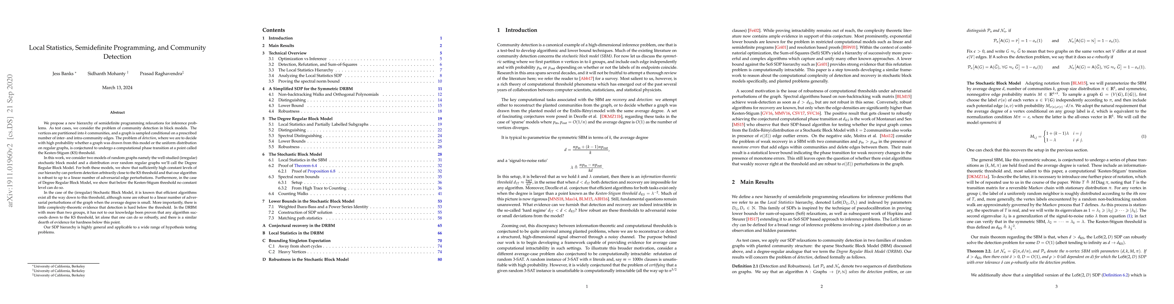 We propose a new hierarchy of semidefinite programming relaxations for inference problems. As test cases, we consider the problem of community detection in block models. The vertices are partitioned into $k$ communities, and a graph is sampled conditional on a prescribed number of inter- and intra-community edges. The problem of detection, where we are to decide with high probability whether a graph was drawn from this model or the uniform distribution on regular graphs, is conjectured to undergo a computational phase transition at a point called the Kesten-Stigum (KS) threshold. In this work, we consider two models of random graphs namely the well-studied (irregular) stochastic block model and a distribution over random regular graphs we'll call the Degree Regular Block Model. For both these models, we show that sufficiently high constant levels of our hierarchy can perform detection arbitrarily close to the KS threshold and that our algorithm is robust to up to a linear number of adversarial edge perturbations. Furthermore, in the case of Degree Regular Block Model (DRBM), we show that below the Kesten-Stigum threshold no constant level can do so. In the case of the (irregular) Stochastic Block Model, it is known that efficient algorithms exist all the way down to this threshold, although none are robust to a linear number of adversarial perturbations of the graph when the average degree is small. More importantly, there is little complexity-theoretic evidence that detection is hard below the threshold. In the DRBM with more than two groups, it has not to our knowledge been proven that any algorithm succeeds down to the KS threshold, let alone that one can do so robustly, and there is a similar dearth of evidence for hardness below this point.