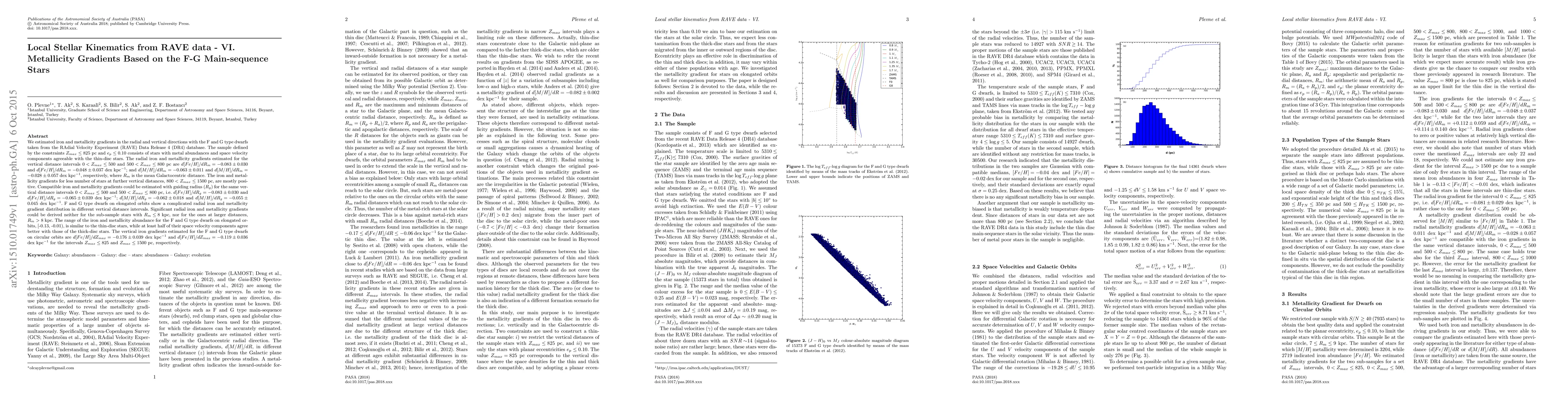 directions with the F and G type dwarfs taken from the RAVE DR4 database. The