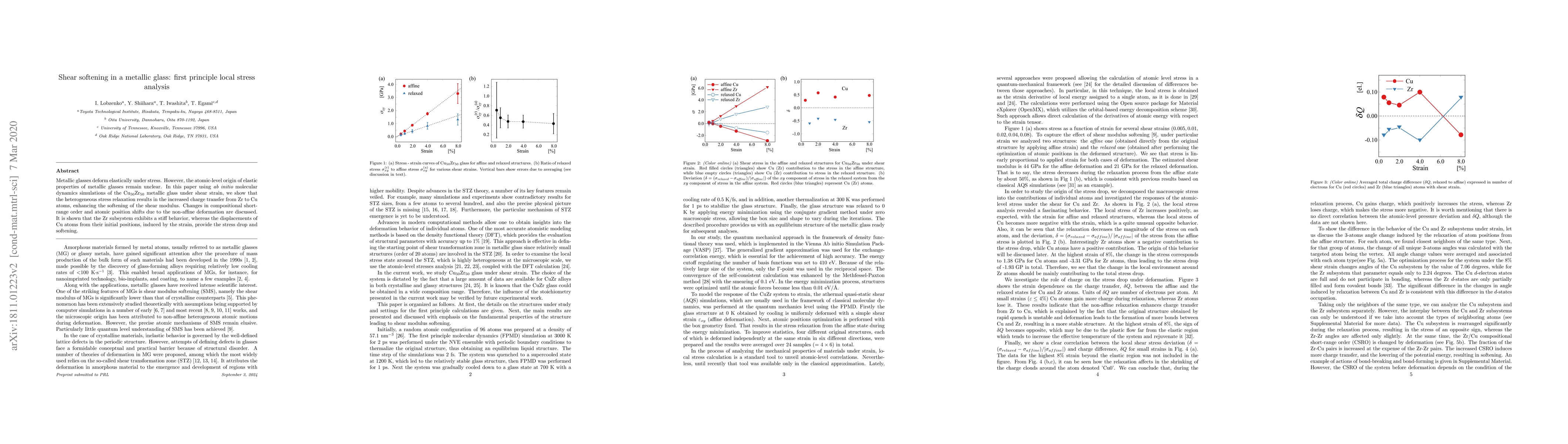The research utilized first-principles local stress calculations to investigate the mechanical deformation of metallic glasses.