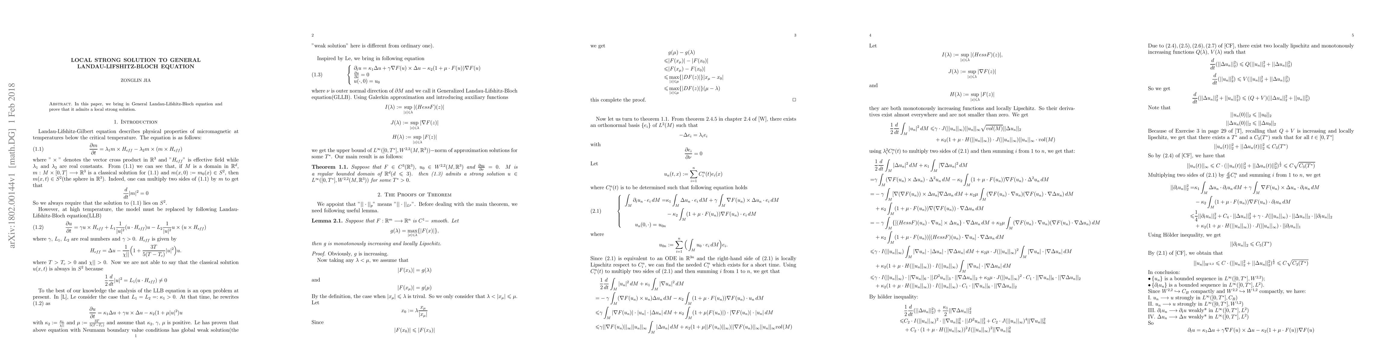 Summary: This paper introduces the General Landau-Lifshitz-Bloch equation and establishes the existence of a local strong solution, providing a rigorous mathematical foundation for its analysis.