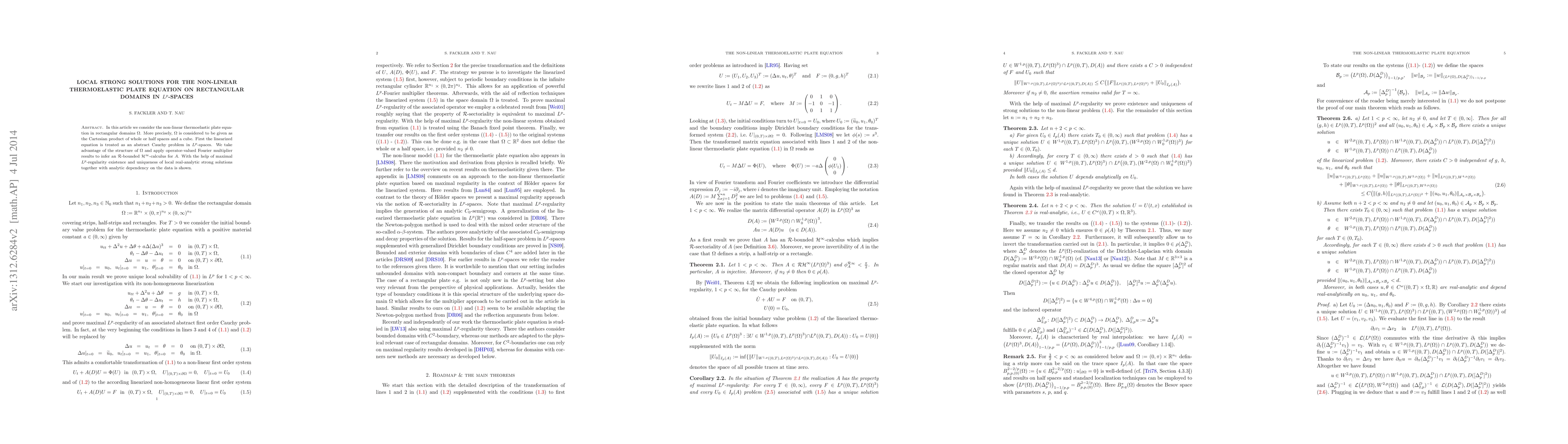This paper investigates the existence and uniqueness of local strong solutions for the non-linear thermoelastic plate equation in rectangular domains. Utilizing operator-valued Fourier multiplier results and maximal $L^p$-regularity, the authors demonstrate the analytic dependency of these solutions on the input data.