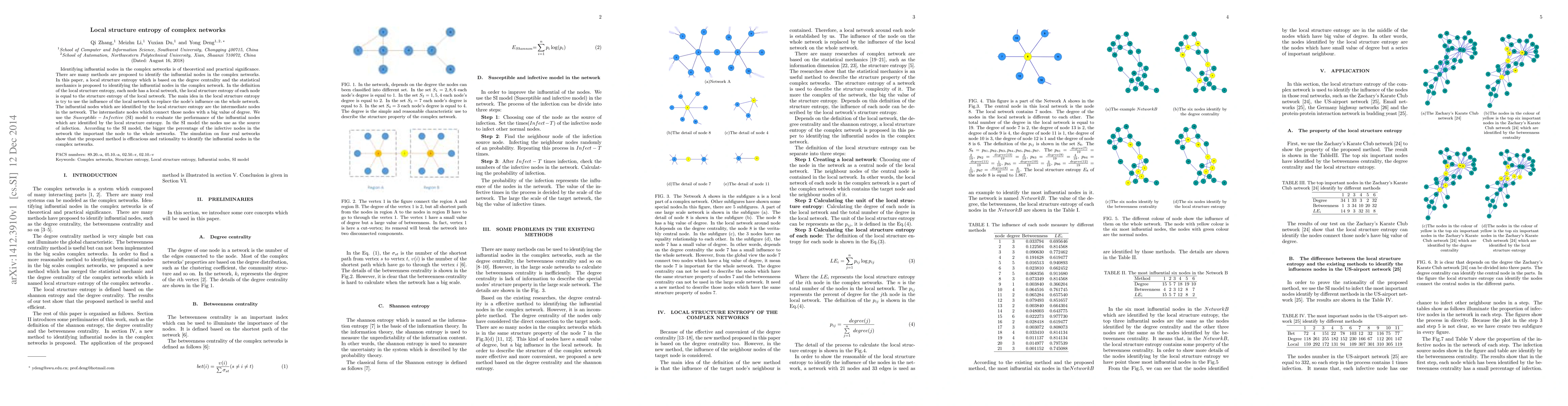 This paper introduces a novel local structure entropy method based on degree centrality and statistical mechanics to identify influential nodes in complex networks. The method evaluates nodes based on their local network structure, demonstrating efficacy through simulations using the SI model on four real networks.