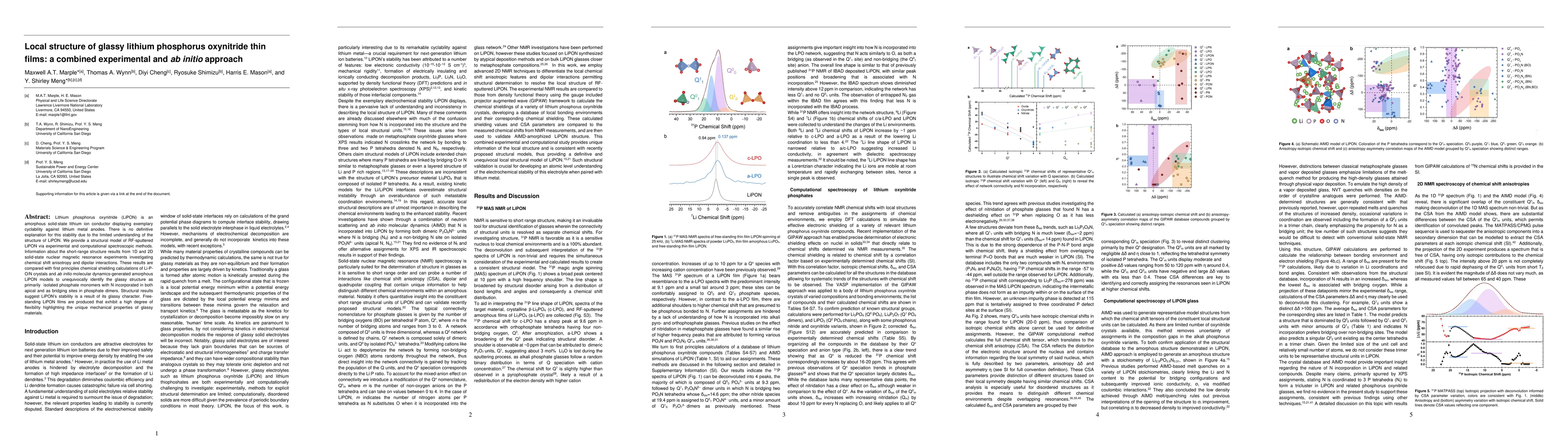 Researchers used experimental and computational methods to study the structure of glassy lithium phosphorus oxynitride thin films, finding they are primarily composed of isolated phosphate monomers with unique mechanical properties.