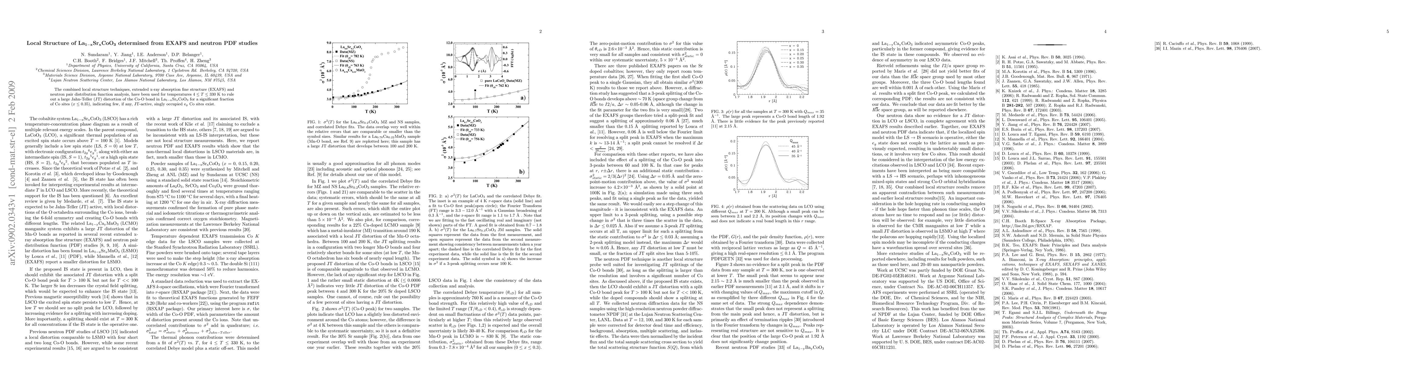 This study uses EXAFS and neutron PDF analysis to determine the local structure of La1-xSrxCoO3, finding minimal Jahn-Teller distortion in the Co-O bond for Sr doping levels up to 35%, suggesting few JT-active sites.