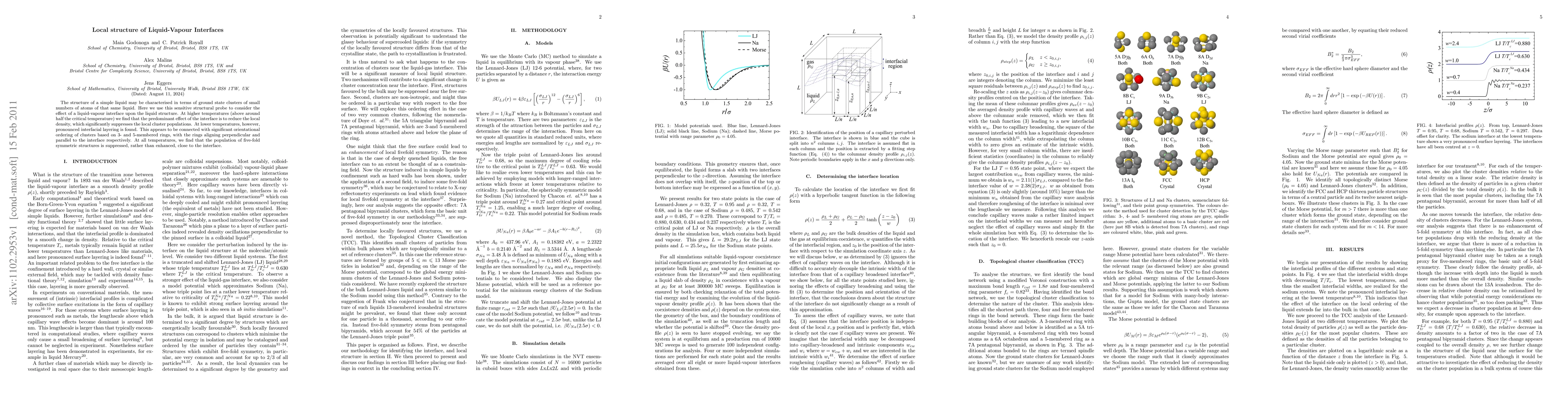 The study uses topological cluster classification (TCC) to analyze the local structure of liquid-vapour interfaces, modeling density profiles with step functions and minimizing least square residuals to find interface positions. The analysis considers Lennard-Jones and Sodium models, comparing Morse and Lennard-Jones potentials.