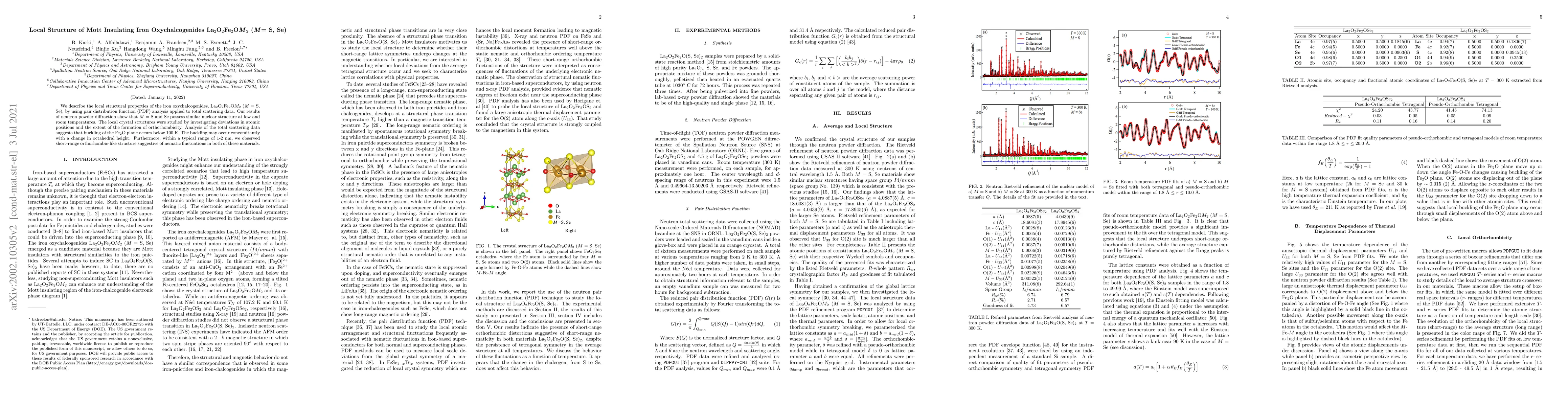 This study uses pair distribution function analysis to investigate the local structure of La$_2$O$_2$Fe$_2$O$M_2$ ($M$ = S, Se) oxychalcogenides, revealing similar nuclear structures for both materials at low and room temperatures. The analysis indicates buckling of the Fe$_2$O plane below 100 K and short-range orthorhombic-like structure suggestive of nematic fluctuations.