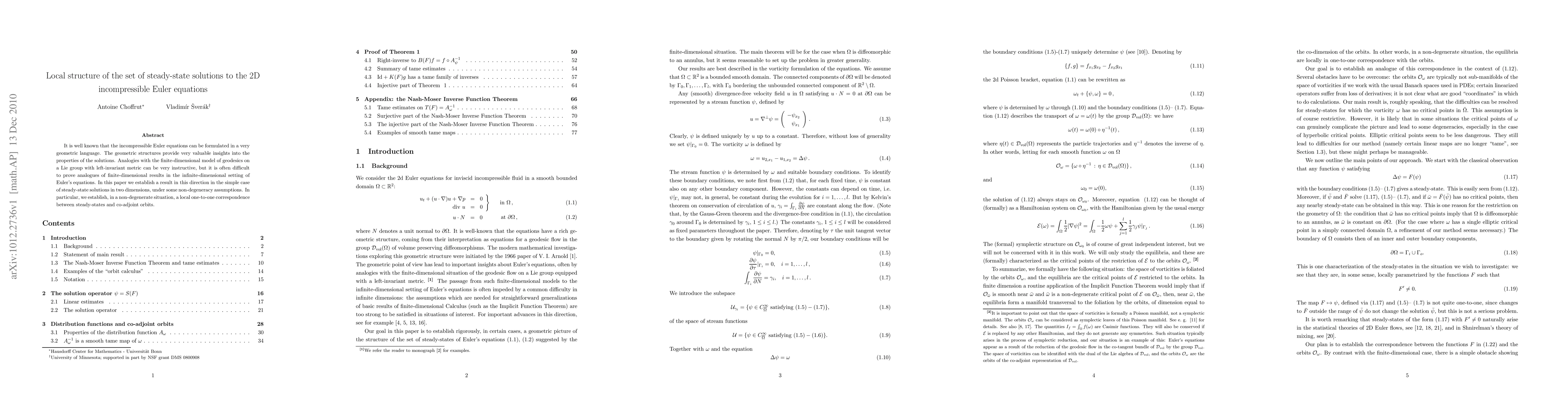 It is well known that the incompressible Euler equations can be formulated in a very geometric language. The geometric structures provide very valuable insights into the properties of the solutions. Analogies with the finite-dimensional model of geodesics on a Lie group with left-invariant metric can be very instructive, but it is often difficult to prove analogues of finite-dimensional results in the infinite-dimensional setting of Euler's equations. In this paper we establish a result in this direction in the simple case of steady-state solutions in two dimensions, under some non-degeneracy assumptions. In particular, we establish, in a non-degenerate situation, a local one-to-one correspondence between steady-states and co-adjoint orbits.