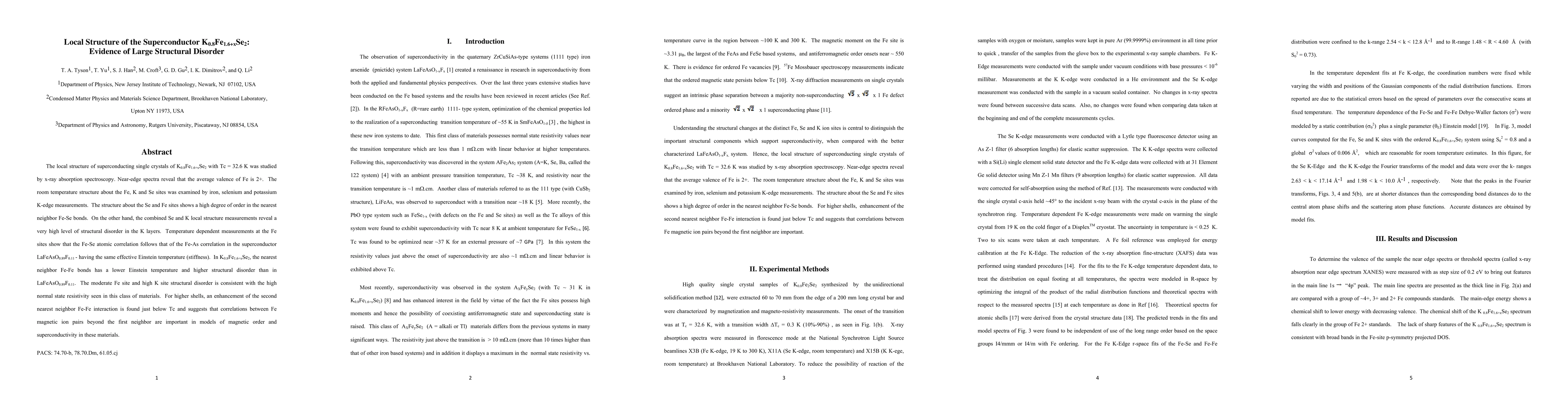 The local structure of superconducting single crystals of K0.8Fe1.6+xSe2 with Tc = 32.6 K was studied by x-ray absorption spectroscopy. Near-edge spectra reveal that the average valence of Fe is 2+. The room temperature structure about the Fe, K and Se sites was examined by iron, selenium and potassium K-edge measurements. The structure about the Se and Fe sites shows a high degree of order in the nearest neighbor Fe-Se bonds. On the other hand, the combined Se and K local structure measurements reveal a very high level of structural disorder in the K layers. Temperature dependent measurements at the Fe sites show that the Fe-Se atomic correlation follows that of the Fe-As correlation in the superconductor LaFeAsO0.89F0.11 - having the same effective Einstein temperature (stiffness). In K0.8Fe1.6+xSe2, the nearest neighbor Fe-Fe bonds has a lower Einstein temperature and higher structural disorder than in LaFeAsO0.89F0.11. The moderate Fe site and high K site structural disorder is consistent with the high normal state resistivity seen in this class of materials. For higher shells, an enhancement of the second nearest neighbor Fe-Fe interaction is found just below Tc and suggests that correlations between Fe magnetic ion pairs beyond the first neighbor are important in models of magnetic order and superconductivity in these materials.