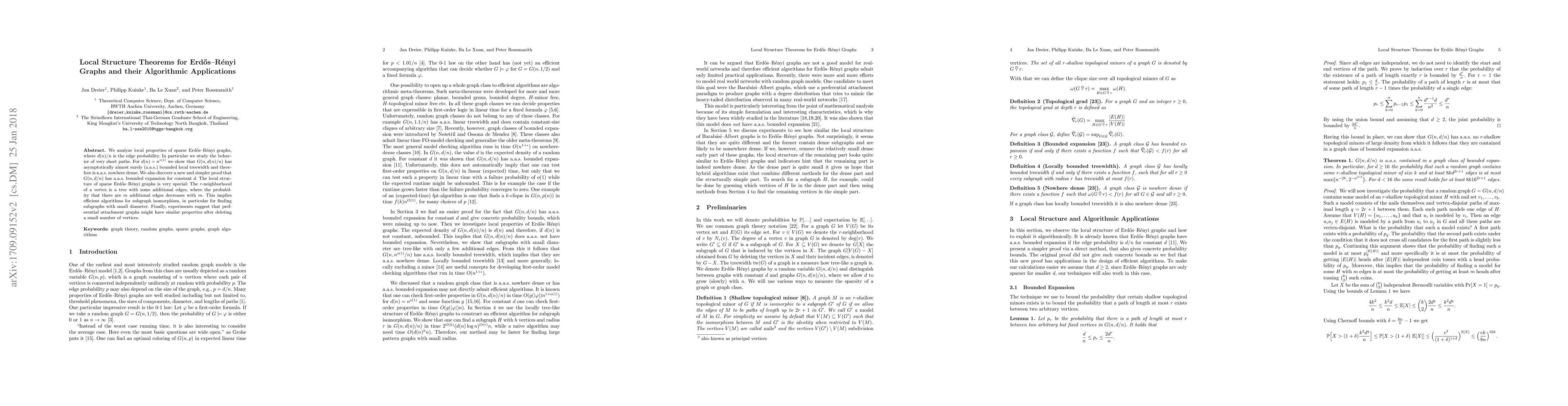 Researchers analyze local properties of sparse Erdos-Renyi graphs, finding that they have asymptotically almost surely bounded local treewidth and expansion for constant edge probability, with implications for efficient algorithms in graph theory and beyond.