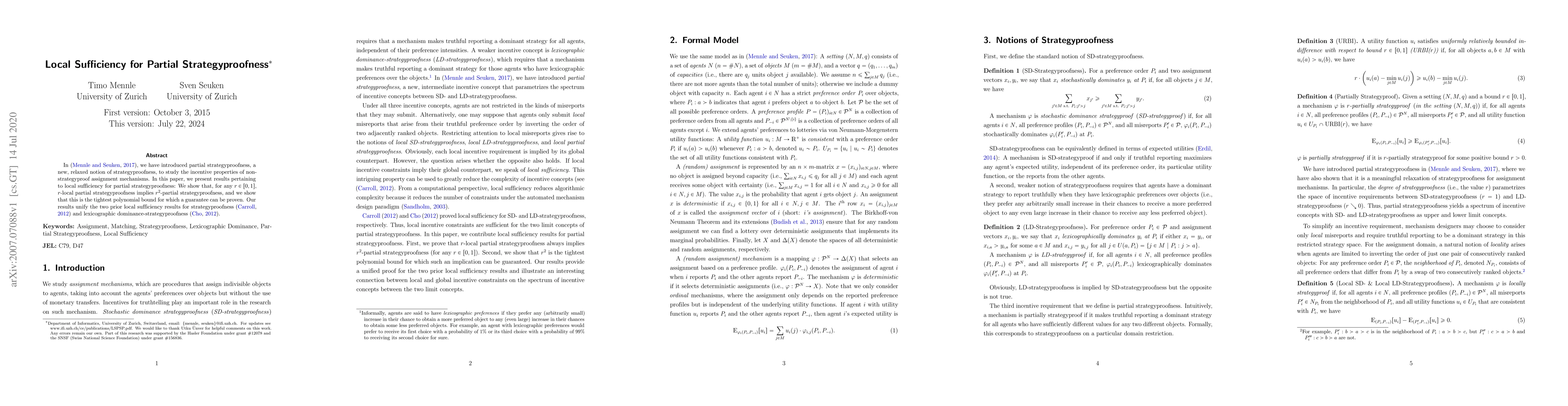 This paper shows that local sufficiency for partial strategyproofness implies a stronger guarantee of strategyproofness, with the tightest known polynomial bound. It unifies results on local sufficiency for strategyproofness and lexicographic dominance-strategyproofness.