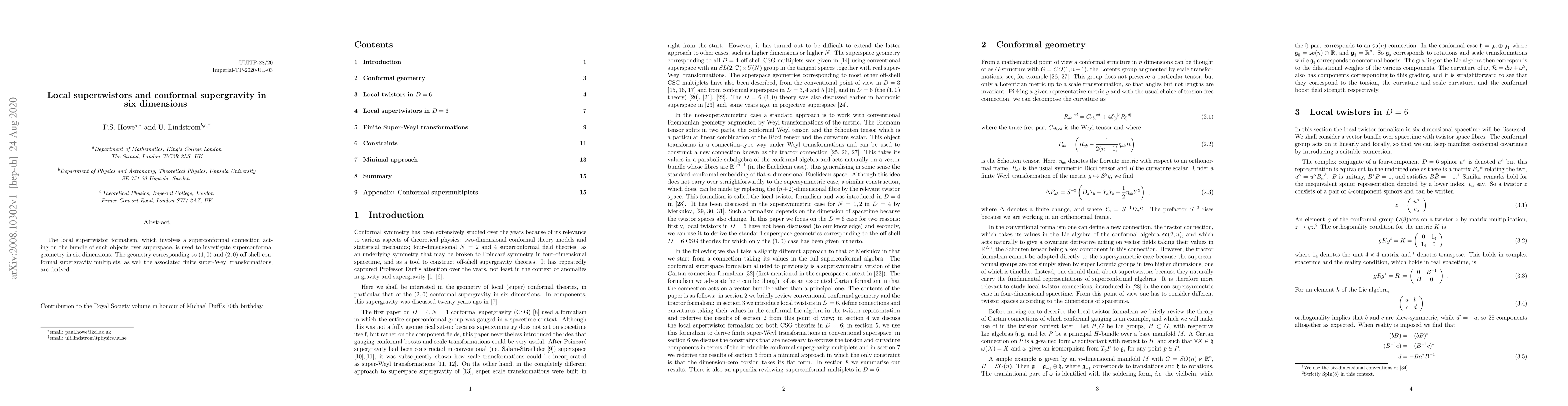 This paper explores the local supertwistor formalism to study six-dimensional superconformal geometry, deriving the geometry of (1, 0) and (2, 0) off-shell conformal supergravity multiplets and the associated finite super-Weyl transformations.