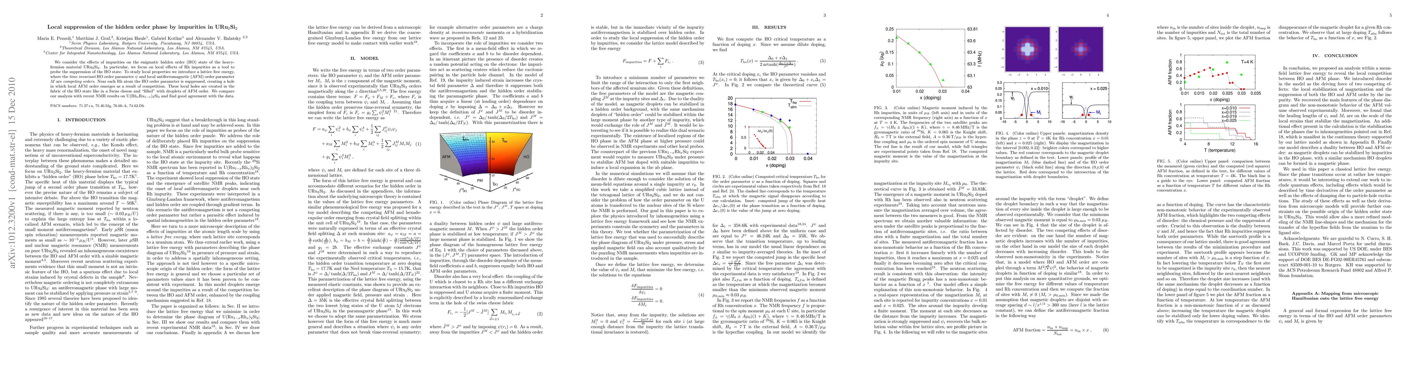 Research on URu2Si2 shows that impurities like Rh suppress the hidden order phase, creating local areas with antiferromagnetic order that fill in the suppressed regions. This finding agrees with recent NMR data.
