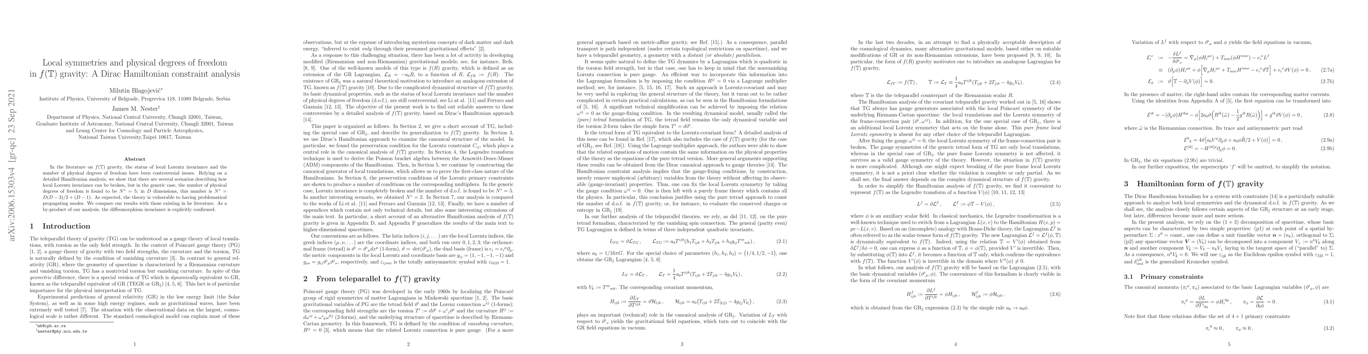This paper uses a Dirac Hamiltonian constraint analysis to explore local symmetries and physical degrees of freedom in $f(T)$ gravity, finding that while local Lorentz invariance can be broken in various scenarios, the generic case maintains $N^*=5$ physical degrees of freedom in $D$ dimensions. The analysis also confirms diffeomorphism invariance.