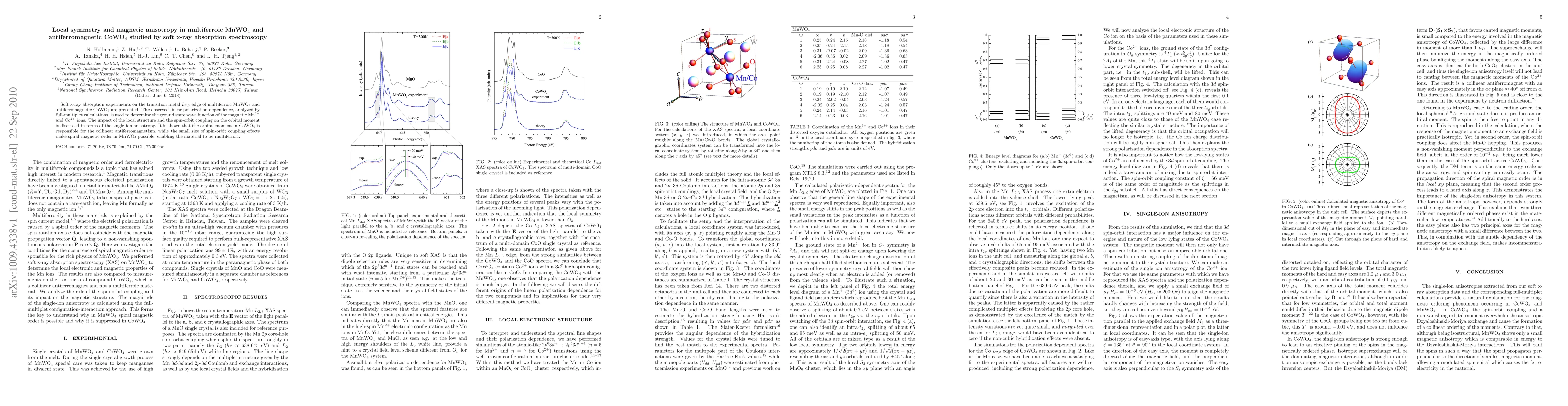 This study uses soft x-ray absorption spectroscopy to analyze the magnetic anisotropy in MnWO4 and CoWO4, revealing that the orbital moment in CoWO4 supports antiferromagnetism, while the weak spin-orbit coupling in MnWO4 allows for spiral magnetic order, contributing to its multiferroic properties.