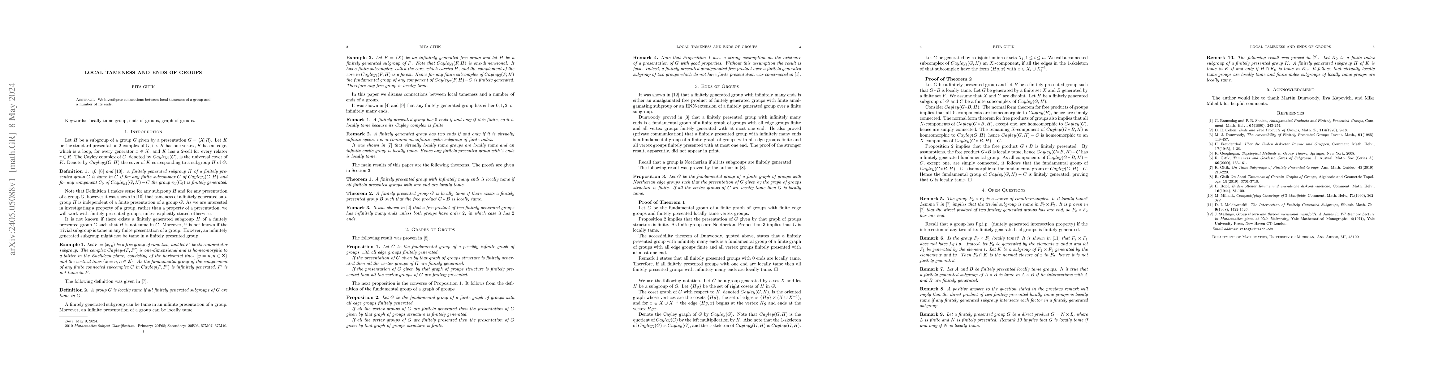 Summary: This study explores the relationship between the local tameness property of a group and the number of its ends, providing insights into how structural characteristics of groups can influence their topological features.