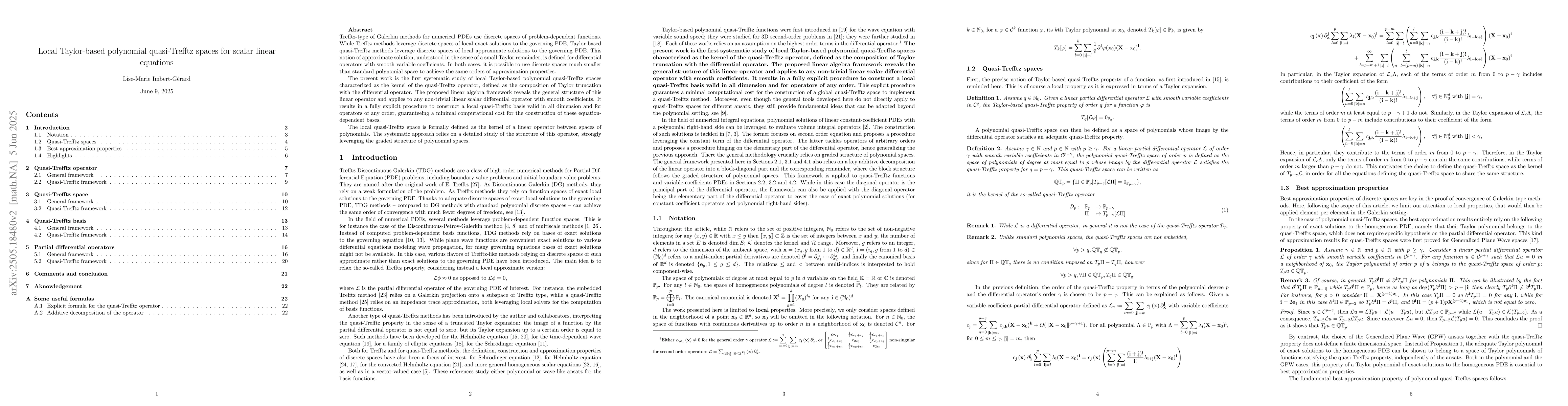 The paper's main technical contribution is the development of a linear algebra framework for local Taylor-based polynomial quasi-Trefftz spaces, providing a systematic approach to construct equation-dependent bases.