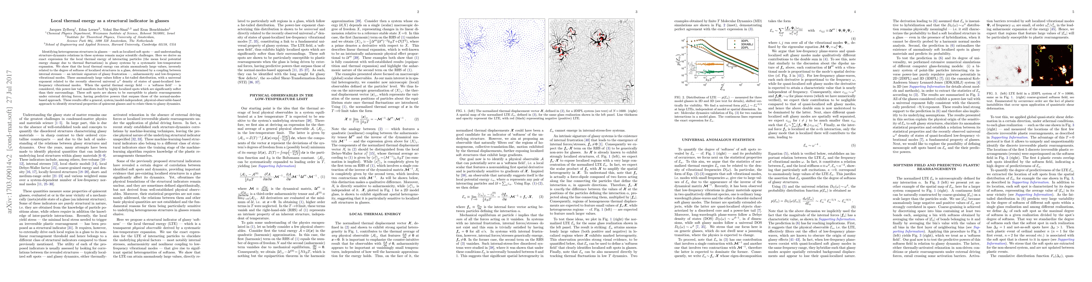 This paper develops an exact expression for local thermal energy in glasses, revealing that anomalously large local thermal energy values inversely correlate with the softness of localized structures. These soft spots, identified via a "softness field," predict plastic rearrangements better than traditional normal-mode approaches, offering a new method to study glassy dynamics and structural properties.