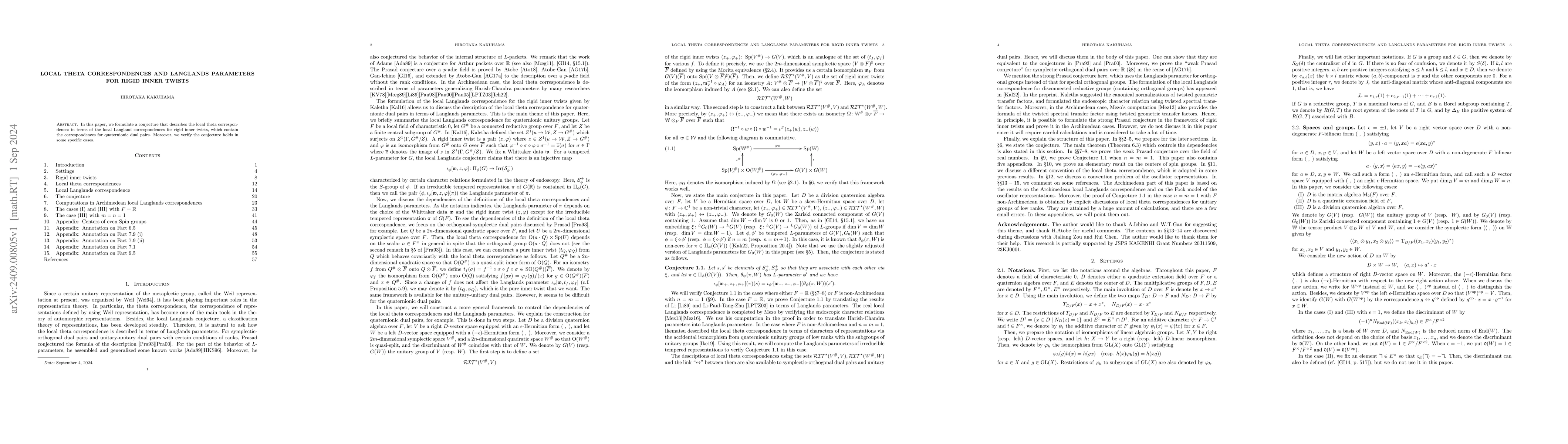 This paper proposes a conjecture linking local theta correspondences to local Langlands parameters for rigid inner twists, particularly focusing on quaternionic dual pairs, and provides verification for specific cases.