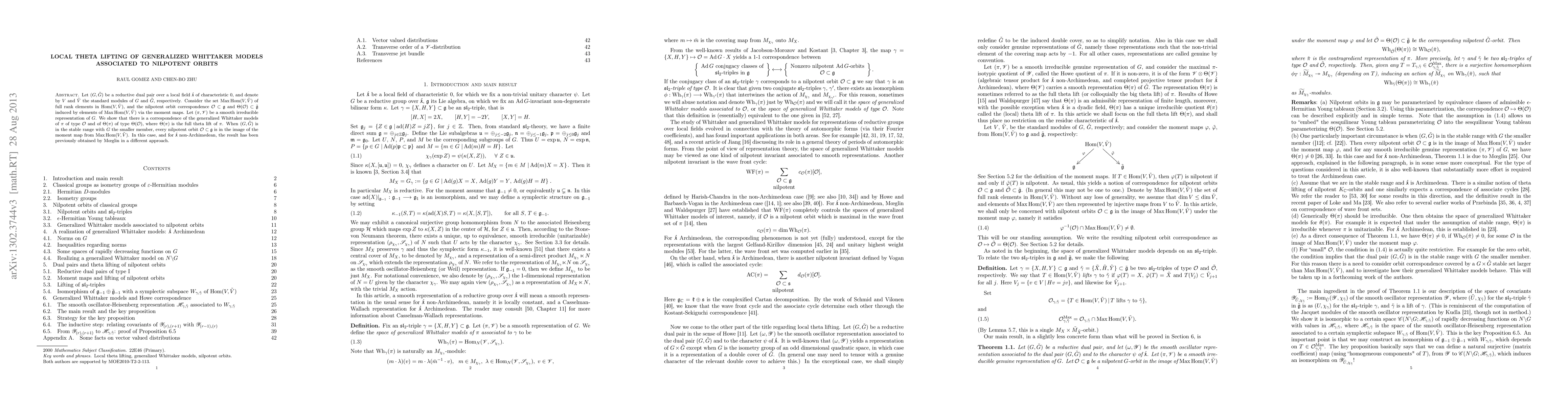 This paper establishes a correspondence between generalized Whittaker models associated with nilpotent orbits for a reductive dual pair over a local field. It shows that the theta lifting process maintains this correspondence under certain conditions, extending previous results by Möglin for non-Archimedean fields.