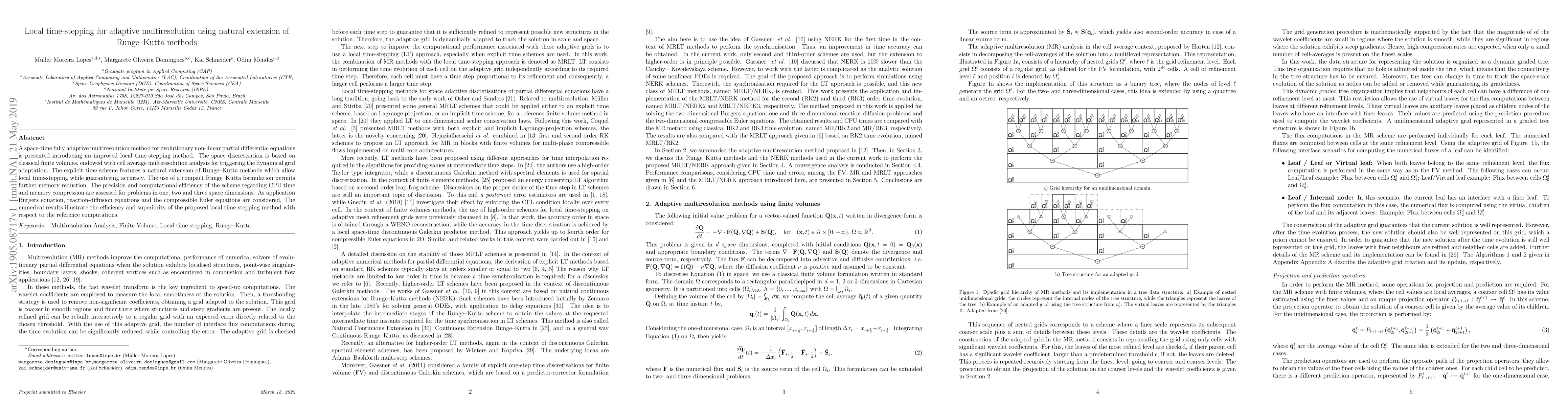 This paper introduces an adaptive multiresolution method for solving evolutionary non-linear PDEs using a local time-stepping approach based on a natural extension of Runge-Kutta methods. The method combines finite volumes with multiresolution analysis for grid adaptation and demonstrates efficiency in CPU time and memory usage for various equations.