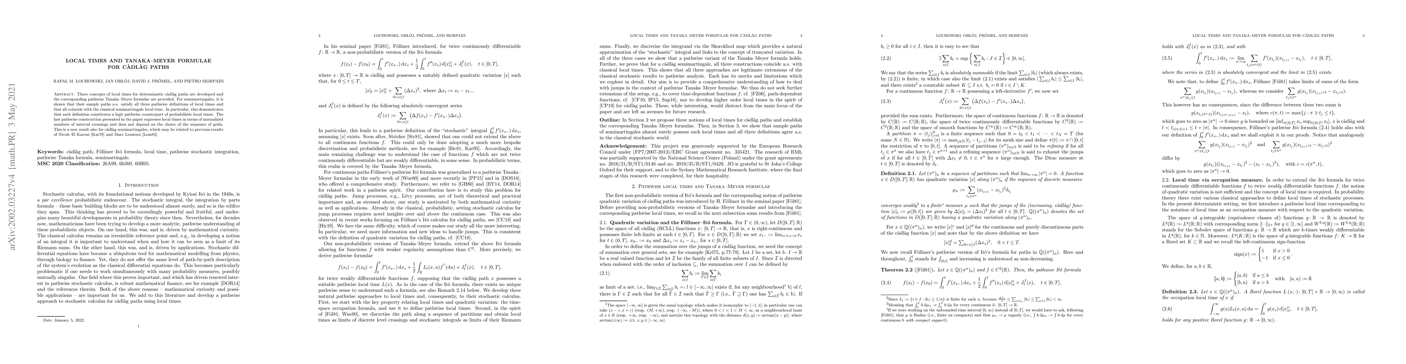 This paper develops three definitions of local times for deterministic càdlàg paths and provides corresponding Tanaka-Meyer formulae. It demonstrates that these definitions coincide for semimartingale paths, establishing them as legitimate pathwise counterparts of probabilistic local times. Additionally, a new pathwise construction expresses local times via normalized interval crossings, independent of grid choice.