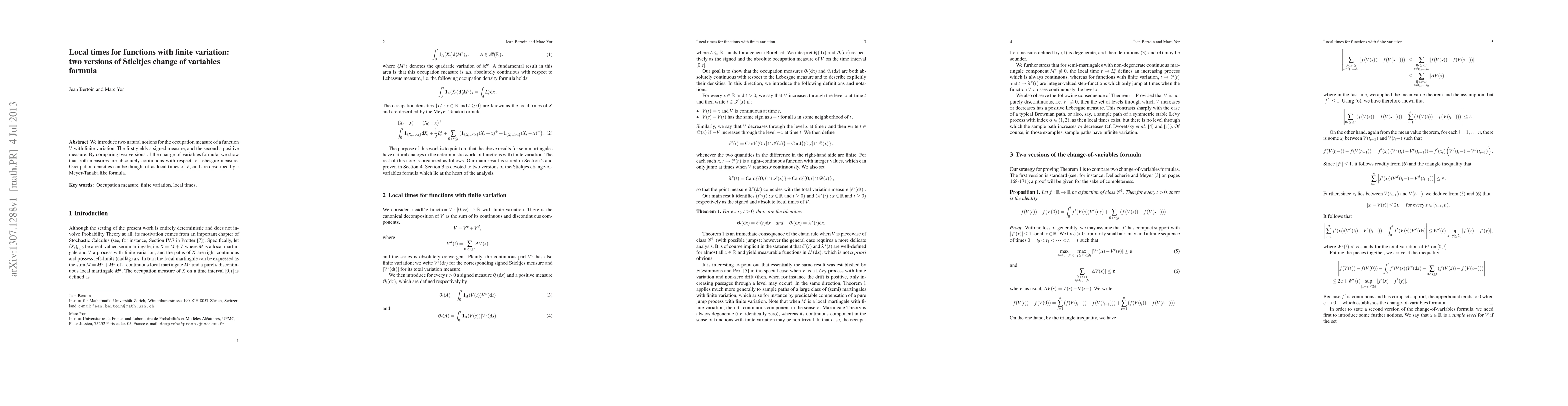 This paper introduces two notions of occupation measures for functions with finite variation, showing they are absolutely continuous with respect to Lebesgue measure, and describes their properties through Meyer-Tanaka-like formulas.