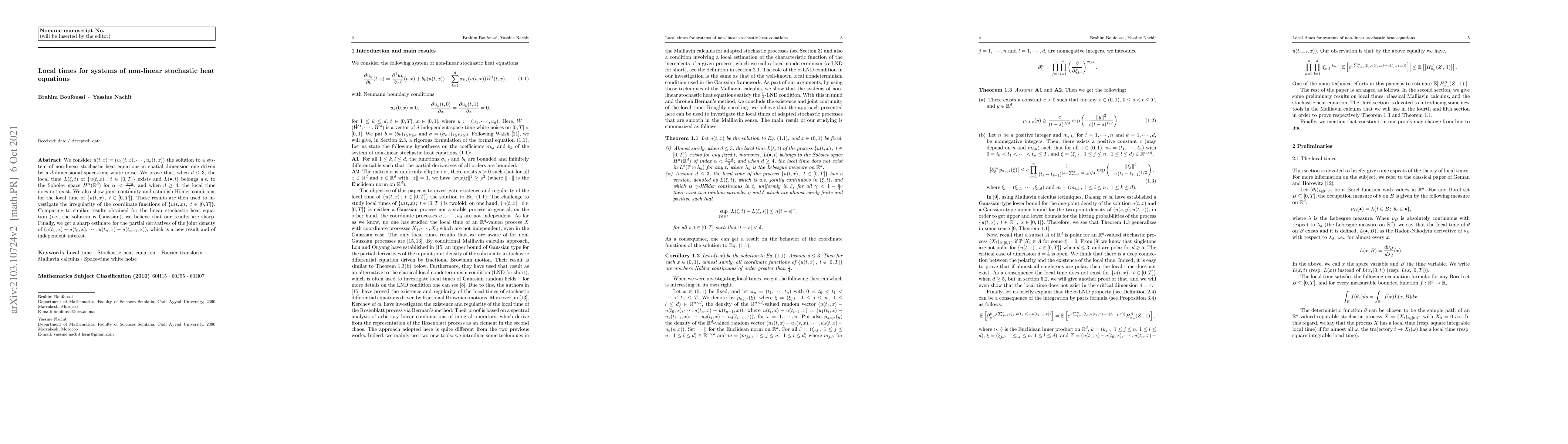 We consider $u(t,x)=(u_1(t,x),\cdots,u_d(t,x))$ the solution to a system of non-linear stochastic heat equations in spatial dimension one driven by a $d$-dimensional space-time white noise. We prove that, when $d\leq 3$, the local time $L(\xi,t)$ of $\{u(t,x)\,,\;t\in[0,T]\}$ exists and $L(\bullet,t) $ belongs a.s. to the Sobolev space $ H^{\alpha}(\mathbb{R}^d)$ for $\alpha<\frac{4-d}{2}$, and when $d\geq 4$, the local time does not exist. We also show joint continuity and establish H\"{o}lder conditions for the local time of $\{u(t,x)\,,\;t\in[0,T]\}$. These results are then used to investigate the irregularity of the coordinate functions of $\{u(t,x)\,,\;t\in[0,T]\}$. Comparing to similar results obtained for the linear stochastic heat equation (i.e., the solution is Gaussian), we believe that our results are sharp. Finally, we get a sharp estimate for the partial derivatives of the joint density of $(u(t_1,x)-u(t_0,x),\cdots,u(t_n,x)-u(t_{n-1},x))$, which is a new result and of independent interest.