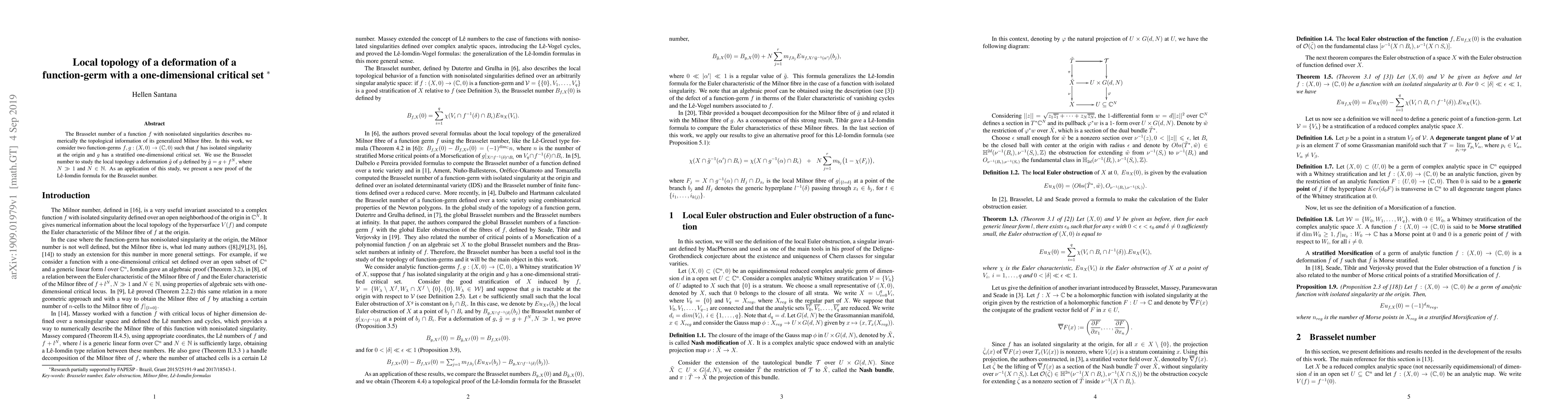 This paper examines the local topology of a deformation of a function-germ $g$ with a one-dimensional critical set by adding a function $f$ with an isolated singularity at the origin. The study utilizes the Brasselet number to analyze the resulting deformation $\tilde{g}=g+f^N$ and provides a new proof of the L\^e-Iomdin formula for the Brasselet number.