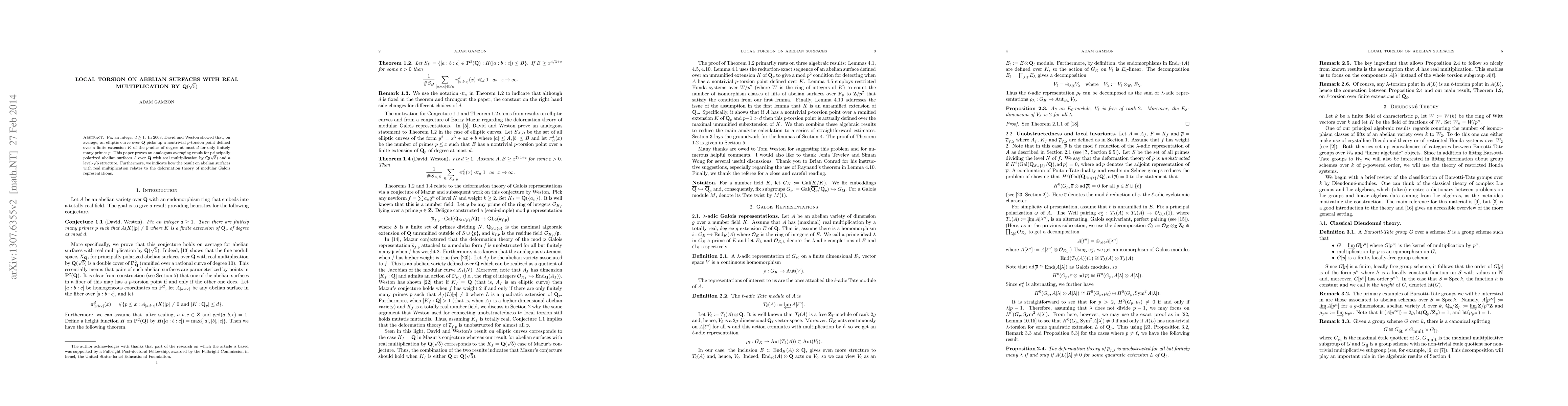 Fix an integer $d>0$. In 2008, David and Weston showed that, on average, an elliptic curve over $\mathbf{Q}$ picks up a nontrivial $p$-torsion point defined over a finite extension $K$ of the $p$-adics of degree at most $d$ for only finitely many primes $p$. This paper proves an analogous averaging result for principally polarized abelian surfaces over $\mathbf{Q}$ with real multiplication by $\mathbf{Q}(\sqrt{5})$ and a level-$\sqrt{5}$ structure. Furthermore, we indicate how the result on abelian surfaces with real multiplication by $\mathbf{Q}(\sqrt{5})$ relates to the deformation theory of modular Galois representations.