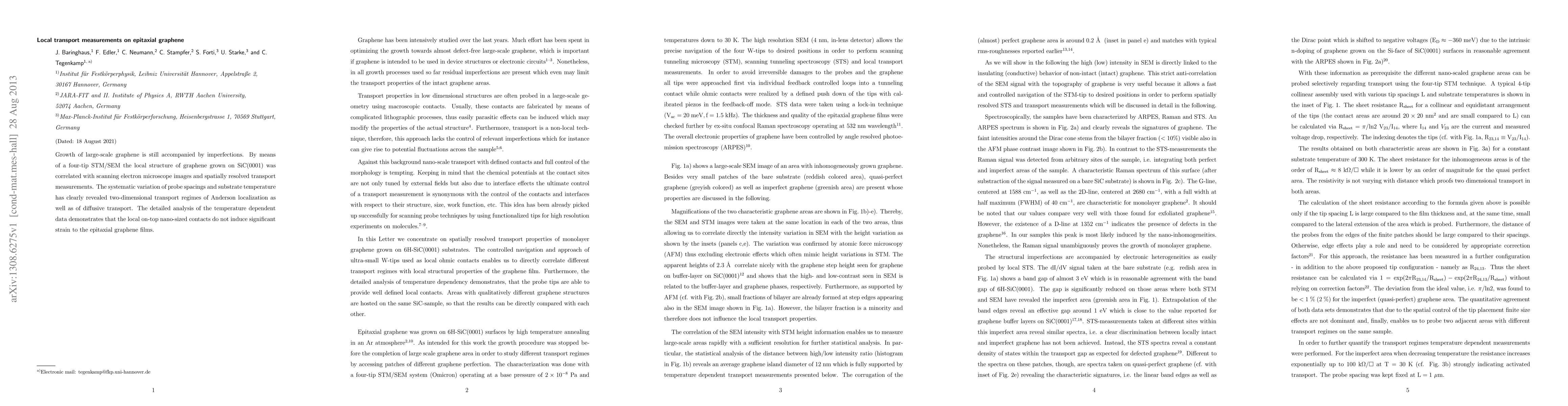 Summary: The study investigates the local transport properties of epitaxial graphene on SiC using a four-tip STM/SEM, revealing two-dimensional transport regimes and showing that local nano-sized contacts do not significantly strain the graphene film. The findings suggest both Anderson localization and diffusive transport behaviors.