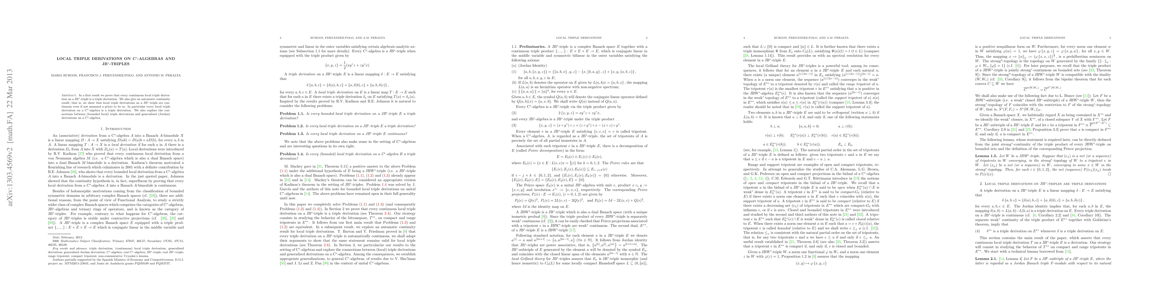 This paper proves that continuous local triple derivations on JB$^*$-triples are triple derivations and that local triple derivations on these structures are continuous regardless of initial assumptions. It also examines relationships between local triple derivations and generalised Jordan derivations in C$^*$-algebras.