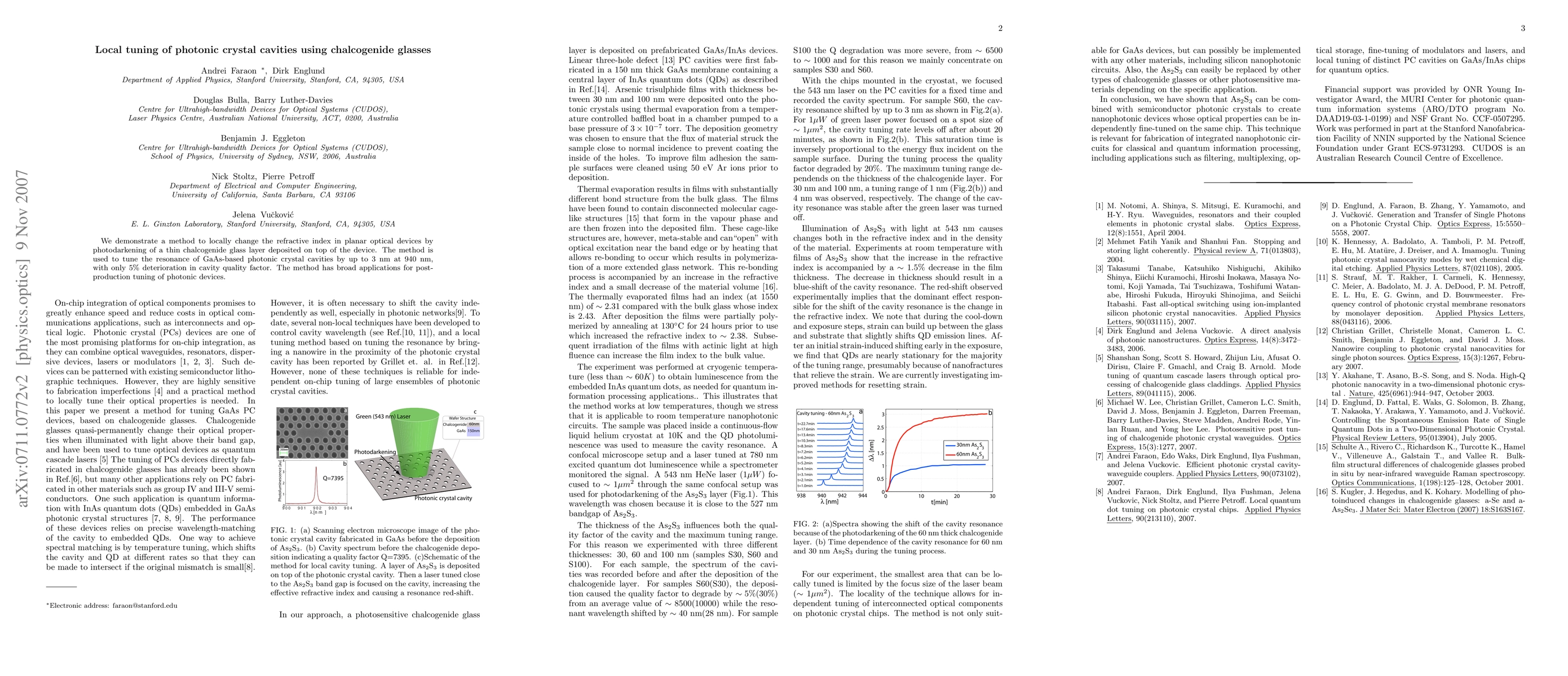 This paper presents a technique for tuning photonic crystal cavities by photodarkening chalcogenide glass, achieving up to 3 nm resonance shifts at 940 nm with minimal quality factor degradation, enabling postproduction adjustments in photonic devices.