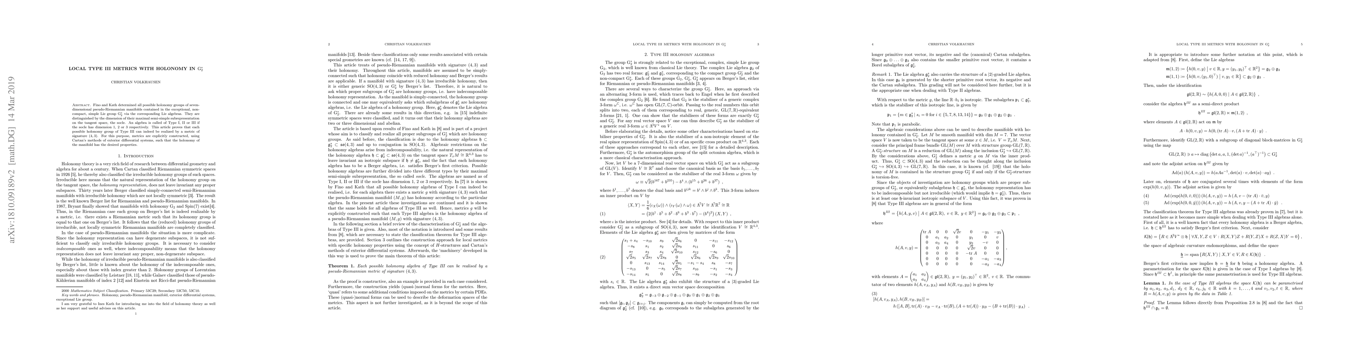 Fino and Kath determined all possible holonomy groups of seven-dimensional pseu\-do-Rie\-man\-nian manifolds contained in the exceptional, non-compact, simple Lie group $\mathrm{G}_2^*$ via the corresponding Lie algebras. They are distinguished by the dimension of their maximal semi-simple subrepresentation on the tangent space, the socle. An algebra is called of Type I, II or III if the socle has dimension 1, 2 or 3 respectively. This article proves that each possible holonomy group of Type III can indeed be realized by a metric of signature $(4,3)$. For this purpose, metrics are explicitly constructed, using Cartan's methods of exterior differential systems, such that the holonomy of the manifold has the desired properties.