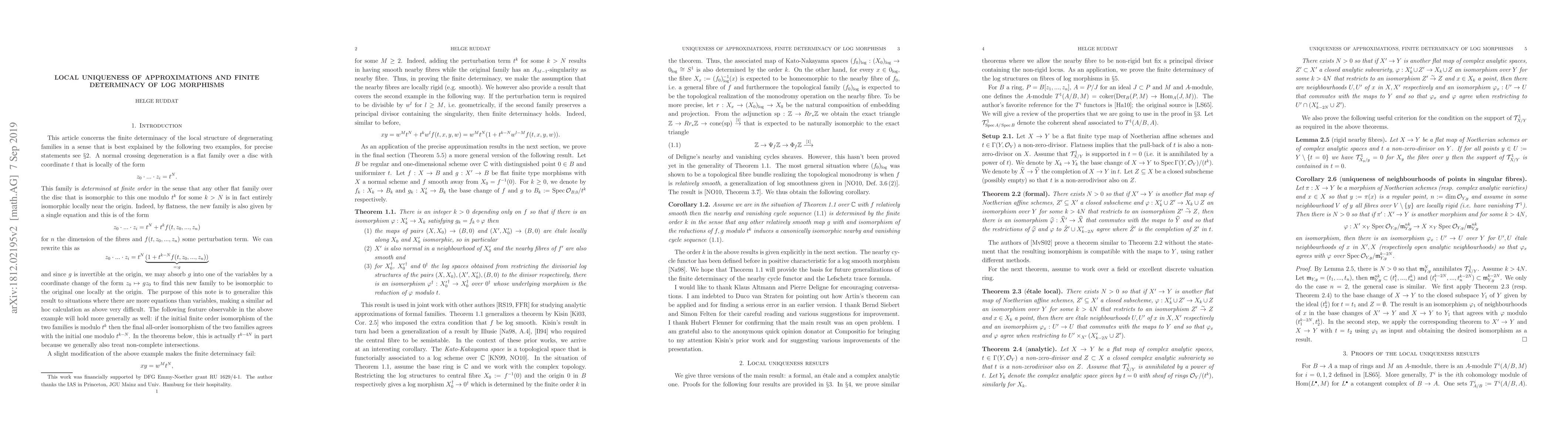 This research proves a local finite determinacy result for singular fibers in families, extending previous findings on log morphisms and nearby/vanishing cycles sheaves by Illusie and Kisin.