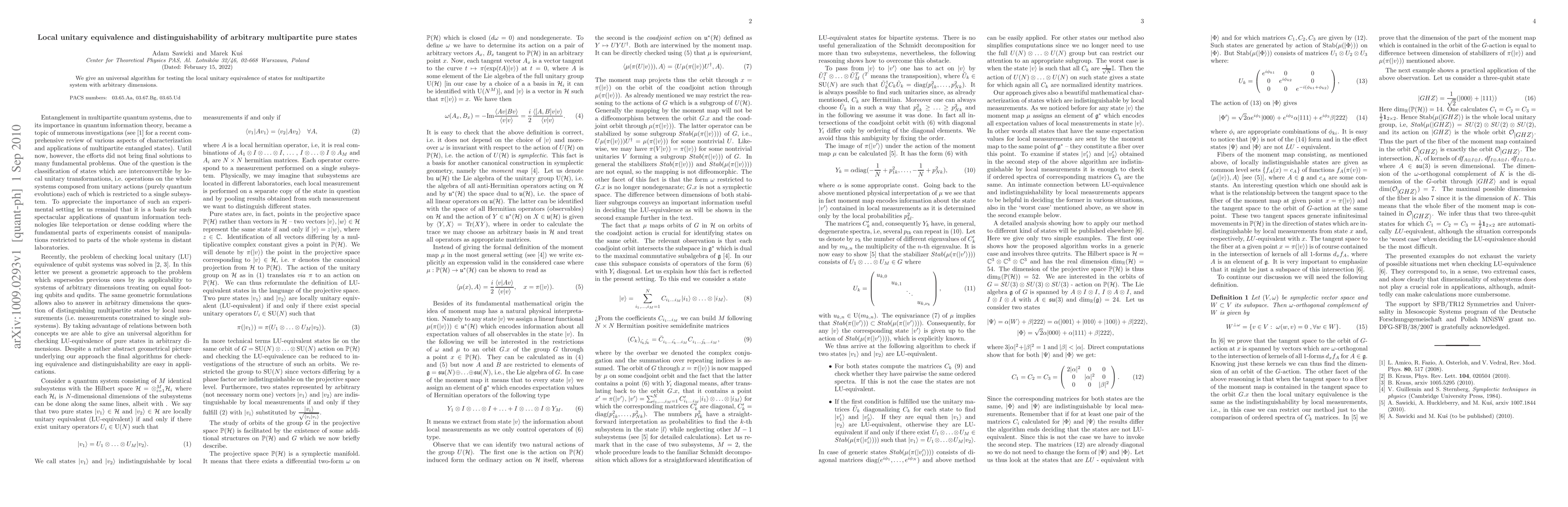 Summary: This paper presents a universal algorithm to determine if multipartite pure quantum states are locally unitarily equivalent, addressing systems of any dimension. The method provides a robust framework for distinguishing such states.