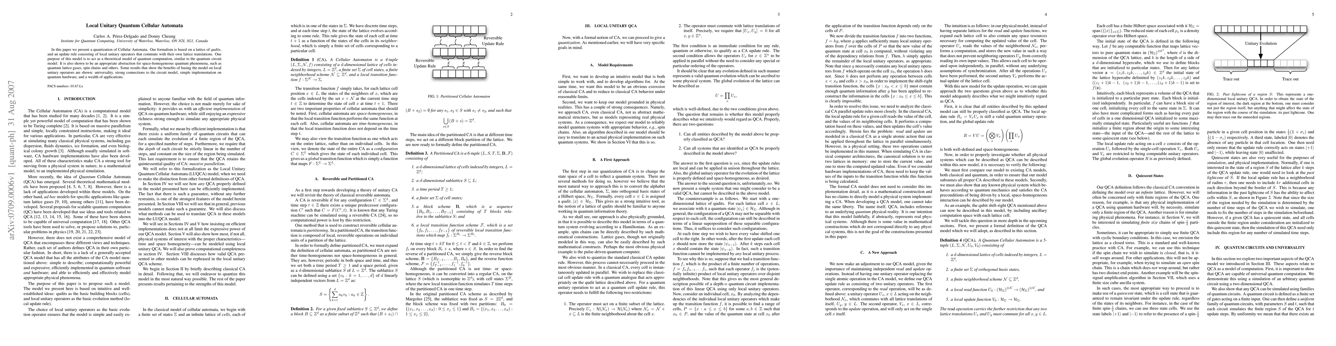 This paper introduces a quantization of Cellular Automata using local unitary operators on a lattice of qudits, aiming to serve as a theoretical model for quantum computation and to abstract space-homogeneous quantum phenomena. The model demonstrates universality, strong ties to the quantum circuit model, and straightforward implementation on quantum hardware.